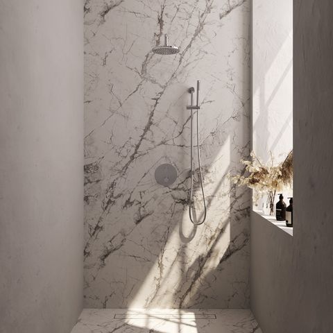 Deze inbouw regendoucheset is vooral geschikt als je een strakke, moderne douche wilt met zo min mogelijk losse onderdelen in het zicht. Houd er rekening mee dat inbouwmontage meer voorbereiding vraagt dan opbouw, en dat het meestal wordt gekozen bij een (gedeeltelijke) badkamerrenovatie. De set heeft geen verschillende straalsoorten en je kunt niet meerdere wateruitgangen tegelijk gebruiken. Zoek je een eenvoudige, complete set met een vaste hoofddouche en een praktische handdouche, dan is dit een passende keuze. Door de verschillende kleuropties kun je de set goed laten aansluiten bij de rest van jouw badkamer.