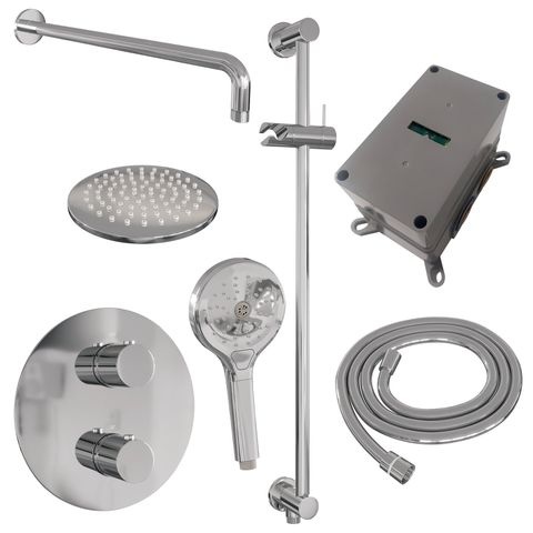 Offerte aanvraag voor Brauer Chrome Edition thermostatische inbouw regendouche 3-weg rond SET 93 | Chroom | 20 cm | Ja | Gebogen wandarm | Ronde handdouche