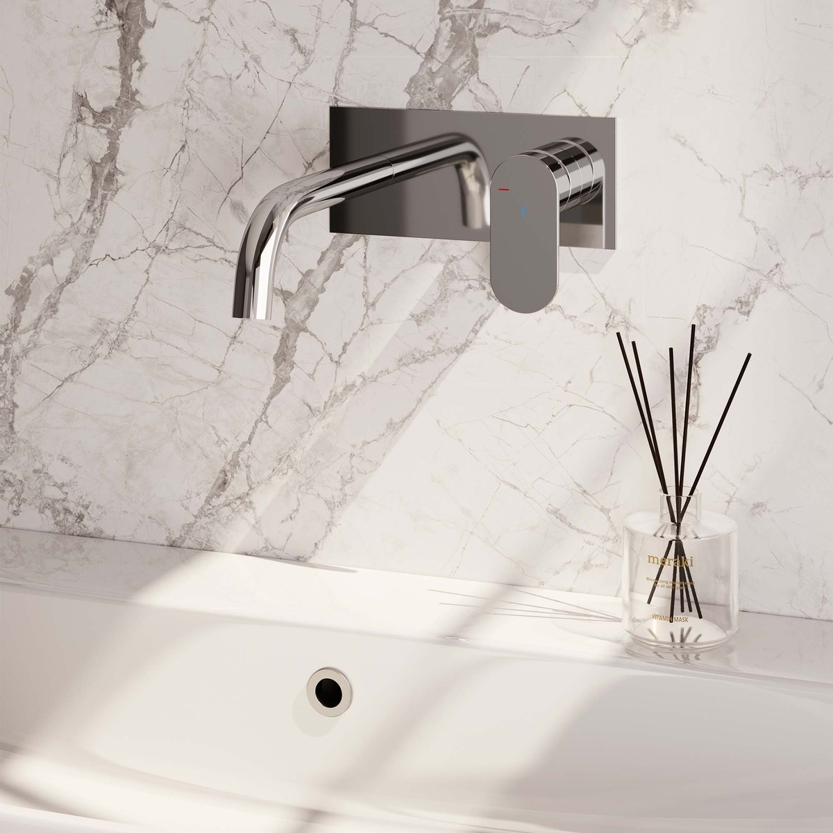 Brauer Chrome Edition inbouw wastafelmengkraan | Chroom | Gebogen uitloop | Achterplaat | Breed plat | Rechts