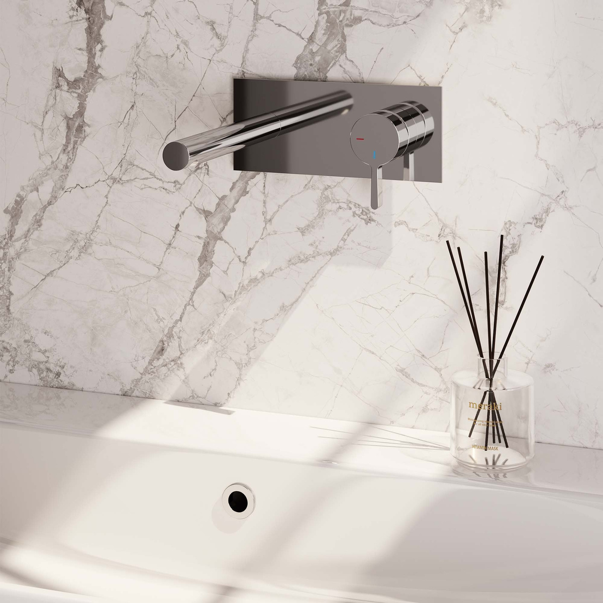 Brauer Chrome Edition inbouw wastafelmengkraan | Chroom | Rechte uitloop | Achterplaat | Middel dik | Rechts