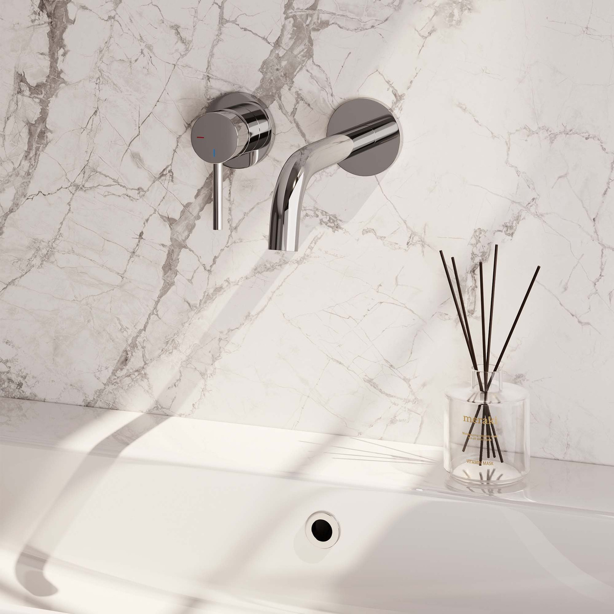 Offerte aanvraag voor Brauer Chrome Edition inbouw wastafelmengkraan | Chroom | Gebogen uitloop | Rozetten | Lang smal | Links