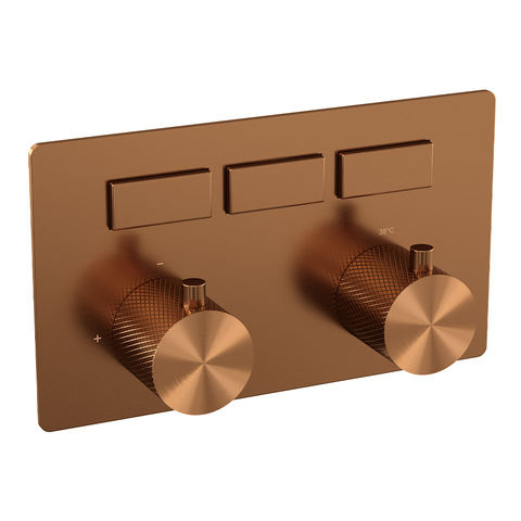 Brauer Copper Carving 3-weg inbouwthermostaat met drukknoppen koper geborsteld PVD