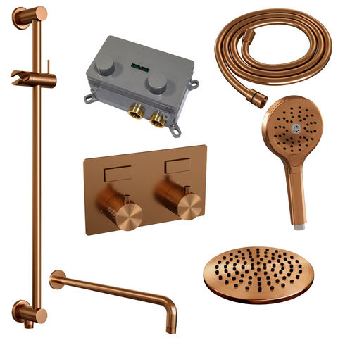 Brauer Copper Carving SET 69 | Geborsteld koper PVD | 20 cm | Ja | Gebogen wandarm | Ronde handdouche