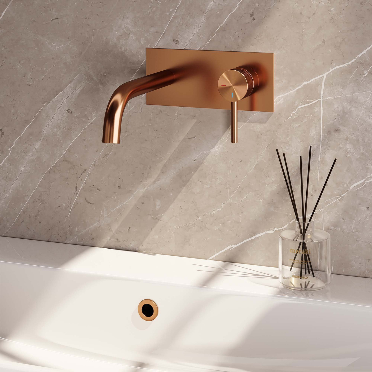 Brauer Copper Carving inbouw wastafelmengkraan | Geborsteld koper PVD | Gebogen uitloop | Achterplaat | Rechts