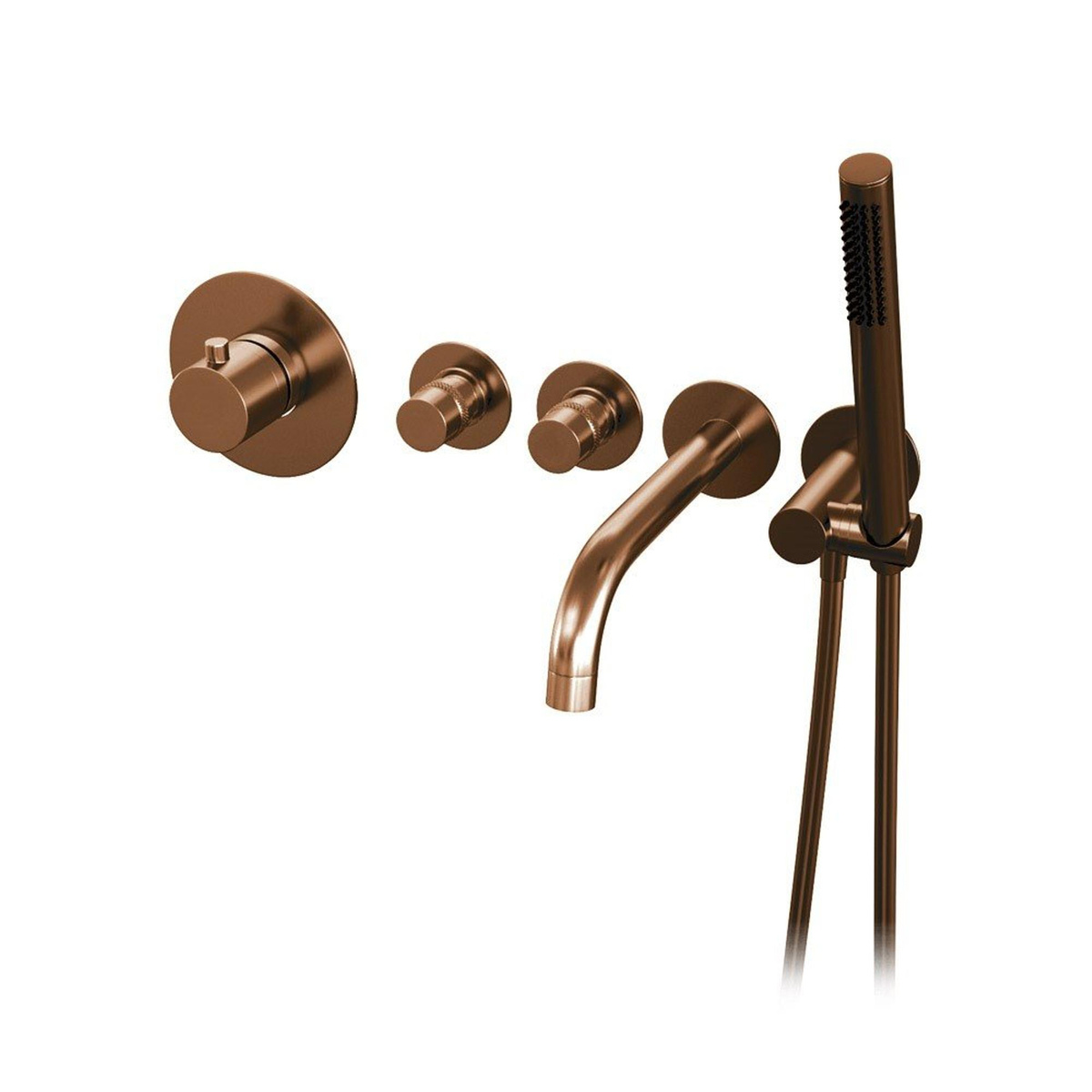 Brauer Copper Edition Badkraan Inbouw - douchegarnituur - 20cm uitloop - inbouwdeel - 3 gladde knoppen - handdouche staaf 1 stand - PVD - geborsteld koper | Geborsteld koper PVD | Staafhanddouche