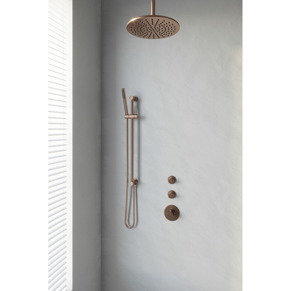 Brauer Copper Edition Regendoucheset inbouw | Geborsteld koper PVD | Staafhanddouche | 30 cm | Plafondbuis | Ja