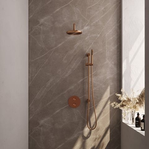 Offerte aanvraag voor Brauer Copper Edition thermostatische inbouw regendouche 3-weg rond SET 87 | Geborsteld koper PVD | 20 cm | Ja | Gebogen wandarm | Staafhanddouche