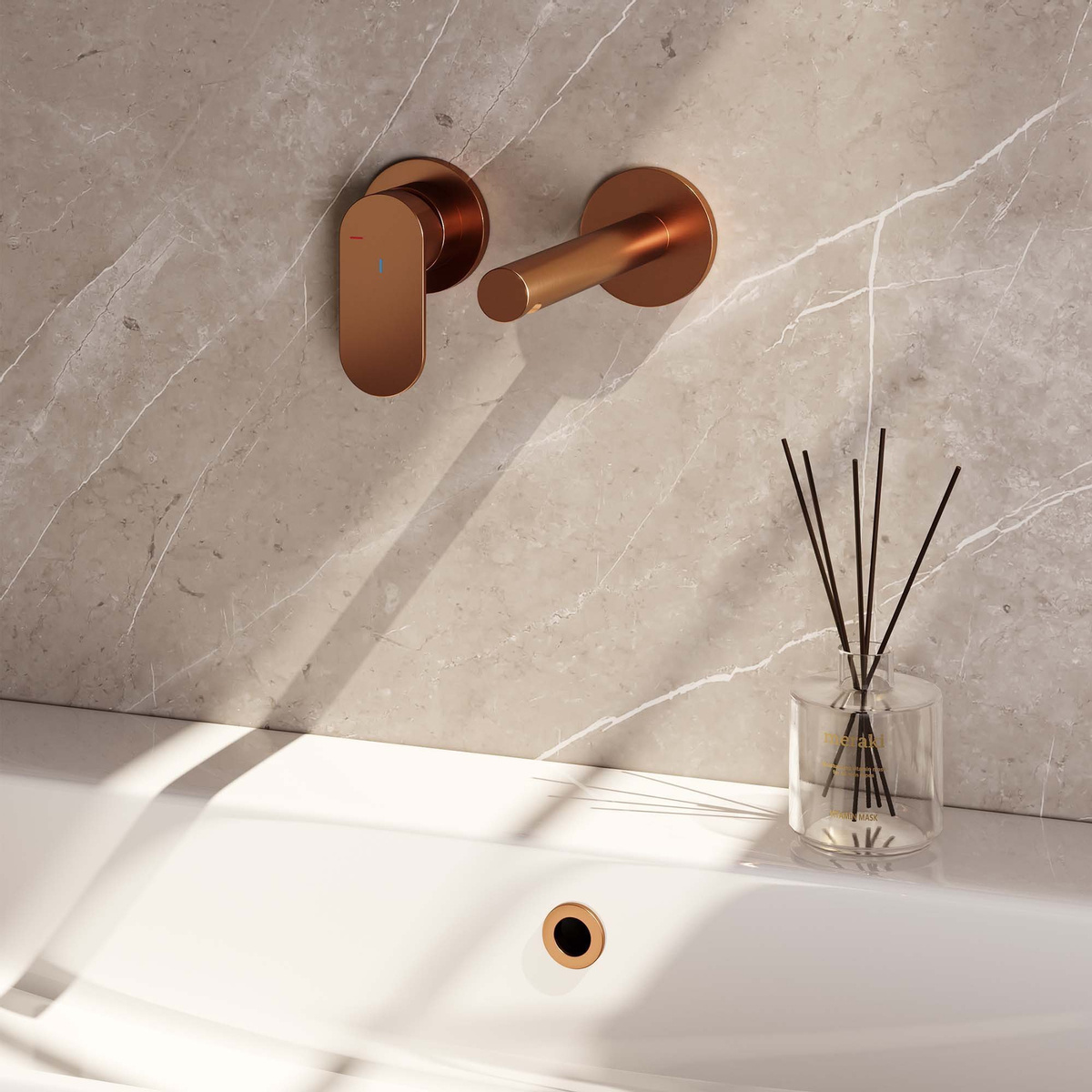De Brauer Copper Edition Wastafelmengkraan inbouw combineert stijl en functionaliteit. Met de rechte uitloop aan de rechterkant kun je eenvoudig je handen wassen of water in de wastafel laten stromen. De brede platte hendel zorgt voor een comfortabele grip en moeiteloze bediening. De geborsteld koperen afwerking geeft de kraan een luxe uitstraling en maakt hem een eyecatcher in je badkamer.