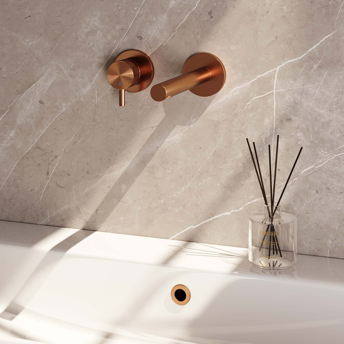 Brauer Copper Edition inbouw wastafelmengkraan | Geborsteld koper PVD | Rechte uitloop | Rozetten | Kort smal | Links