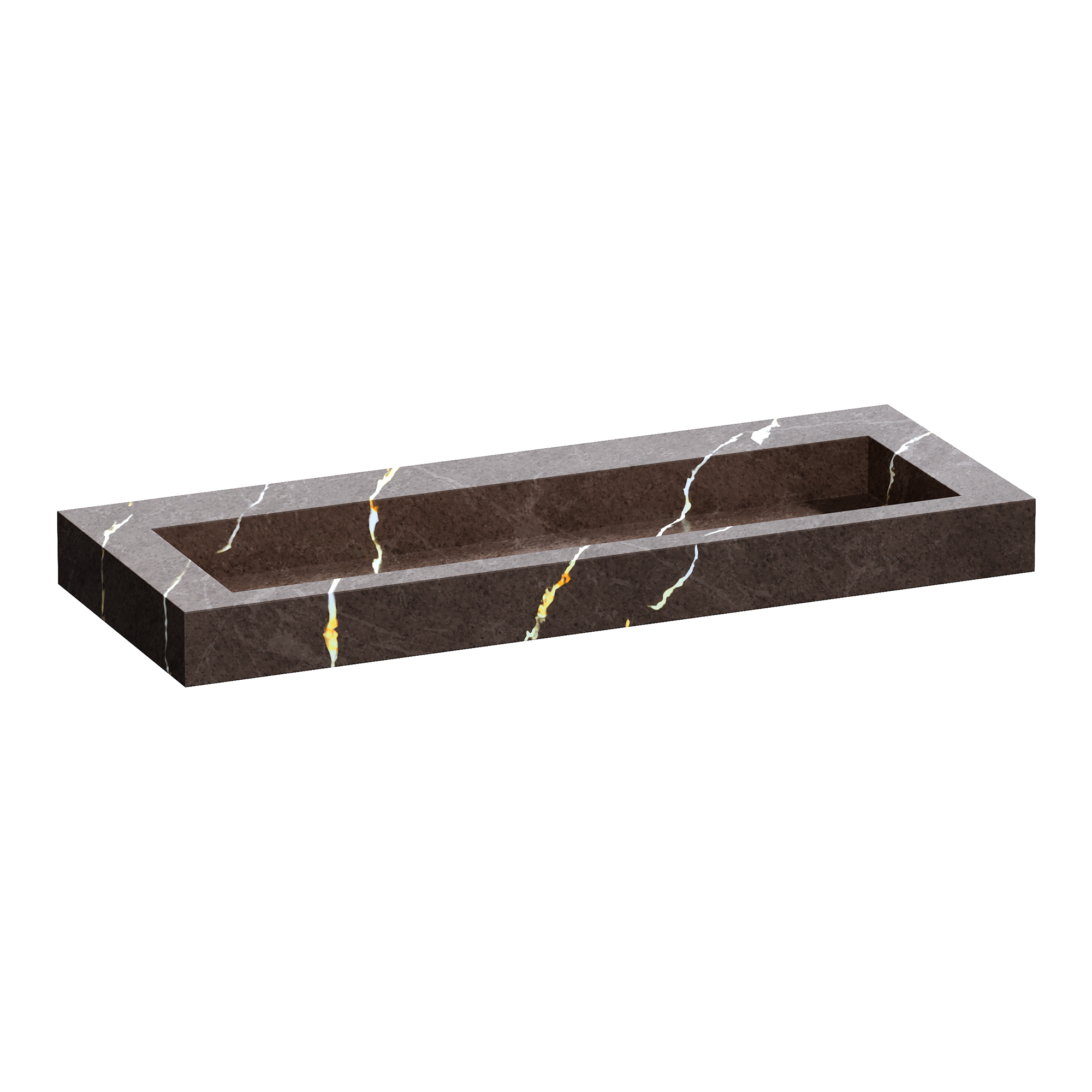 Deze wastafel is vervaardigd uit Artificial Marble, een materiaal dat bekendstaat om zijn duurzaamheid en luxe uitstraling. Elke wastafel heeft een unieke natuursteenlook, wat zorgt voor een persoonlijke touch in je badkamer. Door het ontbreken van een kraangat oogt het geheel strak en minimalistisch, een perfecte keuze voor de moderne woning.