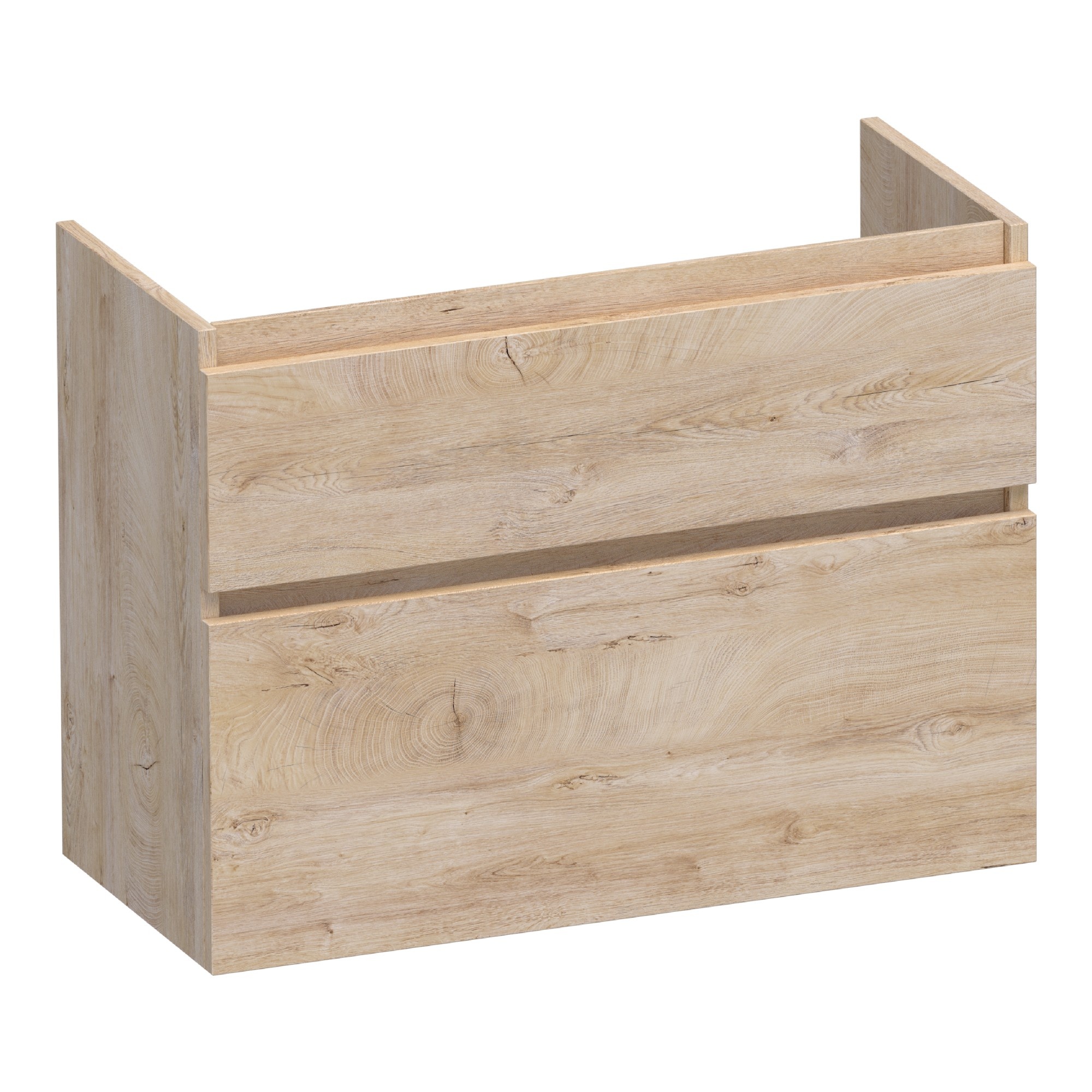 Dankzij het greeploze ontwerp met soft-close laden ervaar je dagelijks comfort. Deze kast is perfect te combineren met ondiepe wastafels, waardoor hij in elke badkameromgeving past. Verkrijgbaar in verschillende breedtes, afgestemd op de wensen van jouw ruimte.