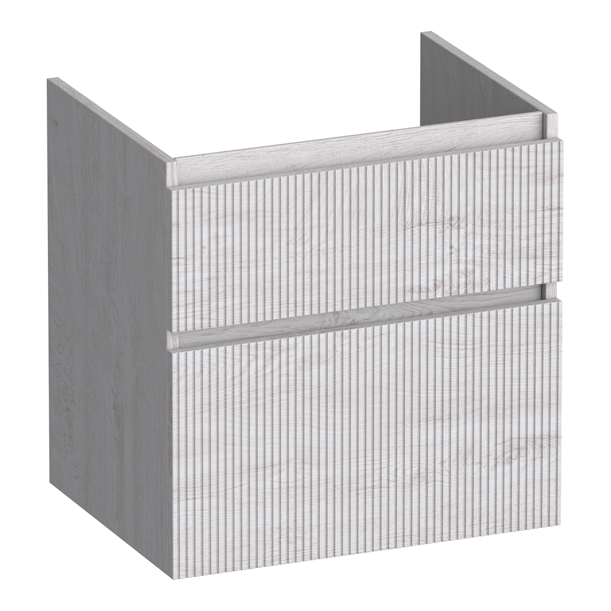 Het karakteristieke verticale ribbelpatroon van de Brauer Delight Wavy serie vangt subtiel het licht, waardoor de onderkast een zachte textuur krijgt. De greeploze en asymmetrische indeling zorgen voor een moderne en strakke look, terwijl de soft-close lades een vleugje luxe bieden. Perfect voor wie een verfijnde balans tussen design en functionaliteit zoekt.