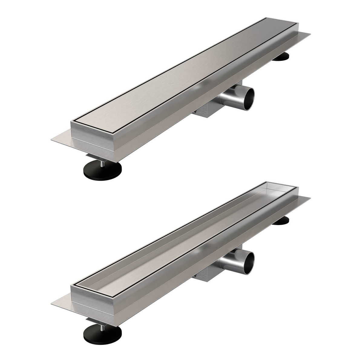 Bij deze luxe douchegoot wordt standaard een tegelinlegrooster meegeleverd, dat op twee manieren gebruikt kan worden. Je kunt ervoor kiezen om een tegel in te plaatsen, of je kunt de onderzijde van het tegelinlegrooster gebruiken om een gesloten rooster van roestvrij staal in je tegelvloer te zien. In beide gevallen zorgen de bijgeleverde afstandhouders ervoor dat het rooster stevig op zijn plaats blijft in de douchegoot.