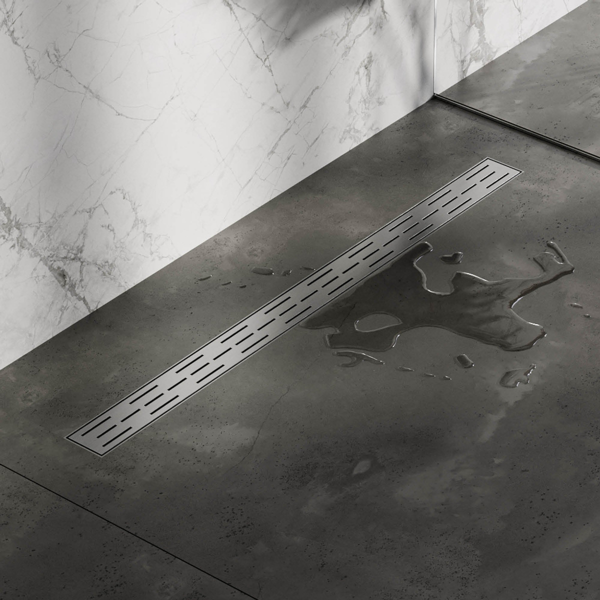 Dit douchegootrooster is gemaakt van hoogwaardig geborsteld roestvrij staal, wat niet alleen duurzaam en corrosiebestendig is, maar ook een moderne uitstraling geeft die naadloos in elke badkamer past.