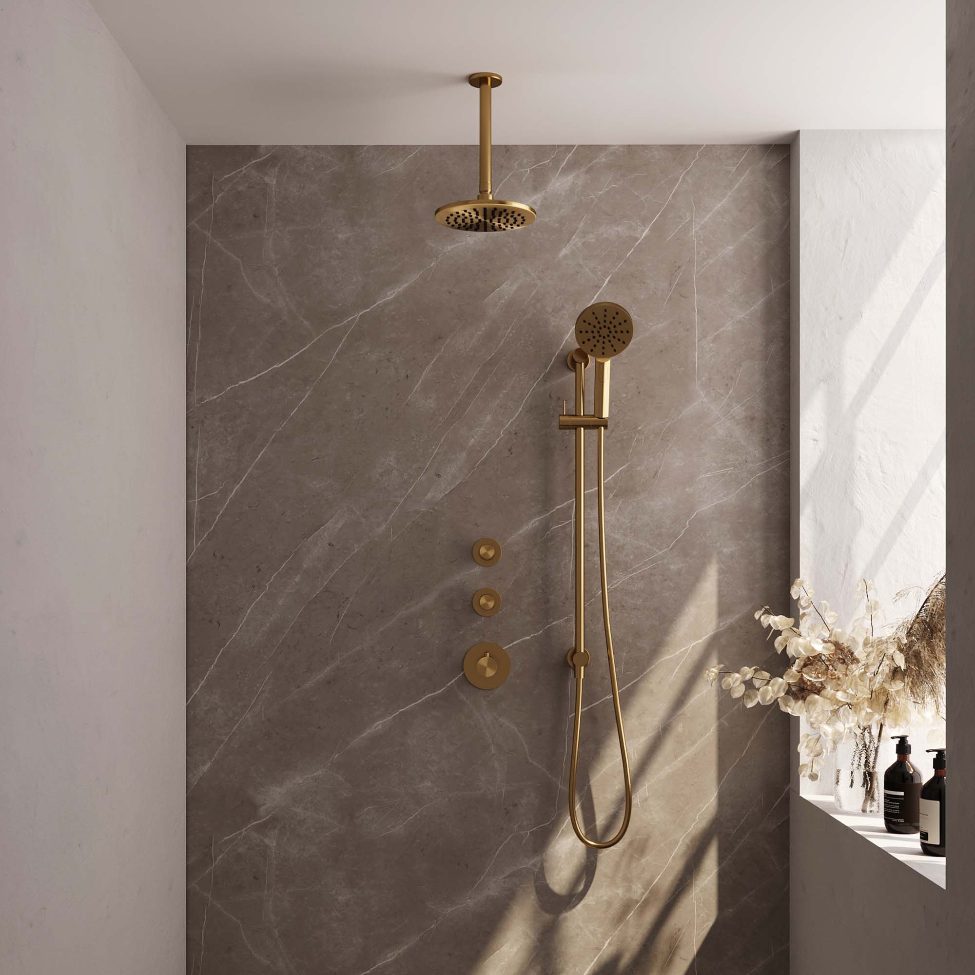 Offerte aanvraag voor Brauer Gold Carving Regendoucheset inbouw | Geborsteld goud PVD | Ronde Handdouche | 20 cm | Plafondbuis | Ja