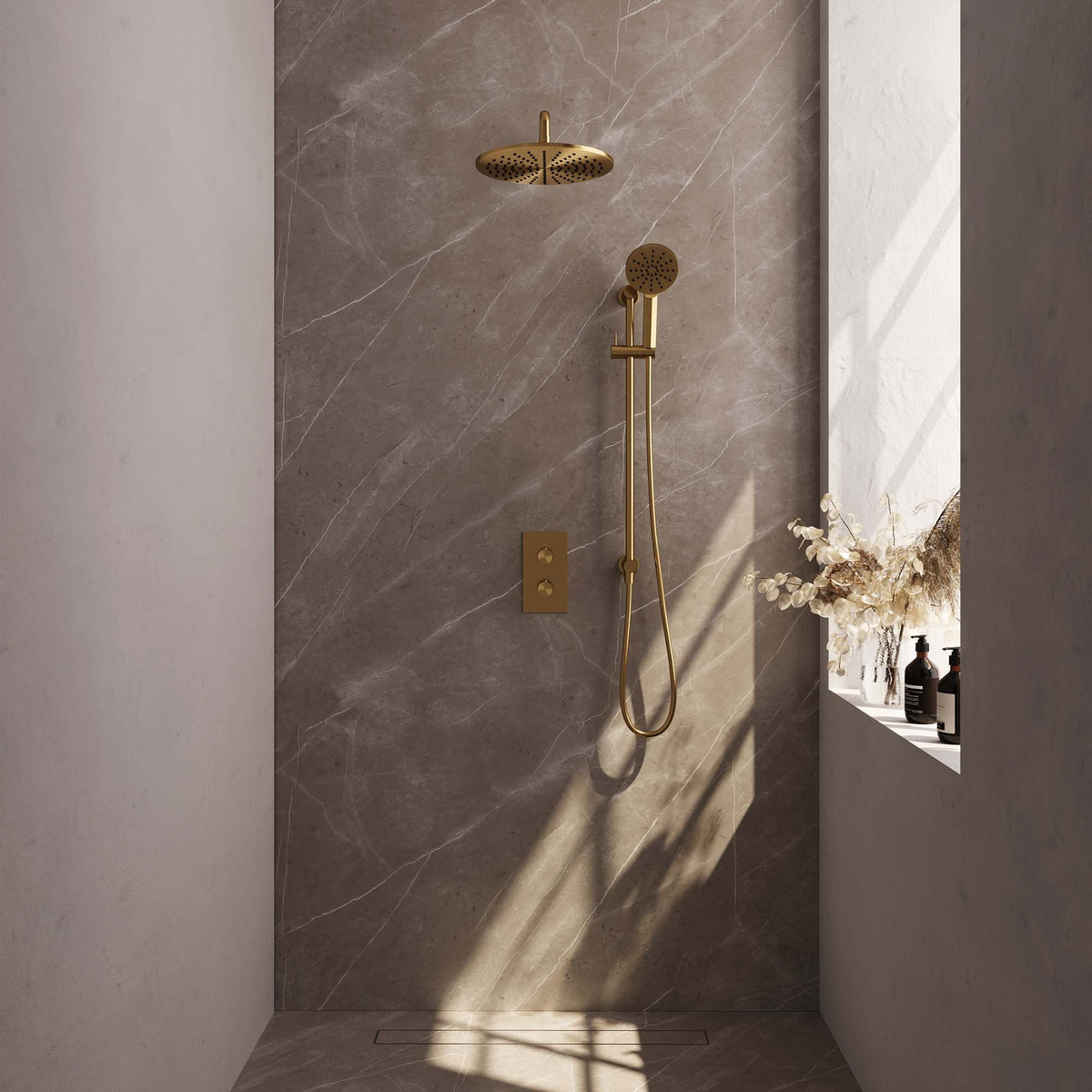 Brauer Gold Edition Regendoucheset inbouw | Geborsteld goud PVD | Ronde Handdouche | 30 cm | Gebogen wandarm | Ja