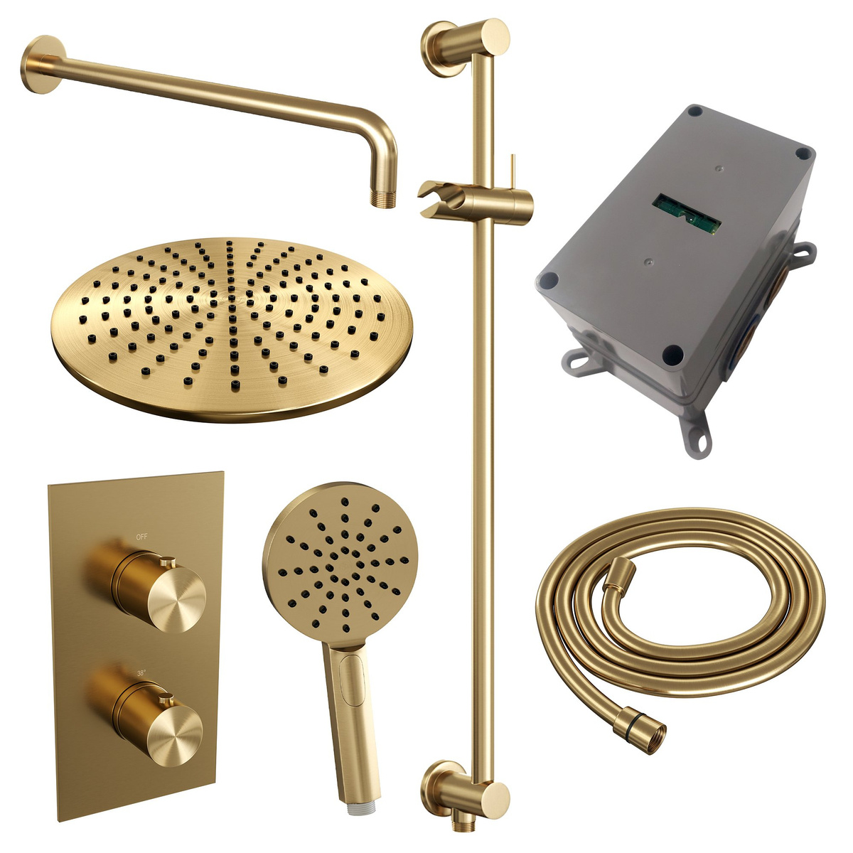 Offerte aanvraag voor Brauer Gold Edition Regendoucheset inbouw | Geborsteld goud PVD | Ronde Handdouche | 30 cm | Gebogen wandarm | Ja