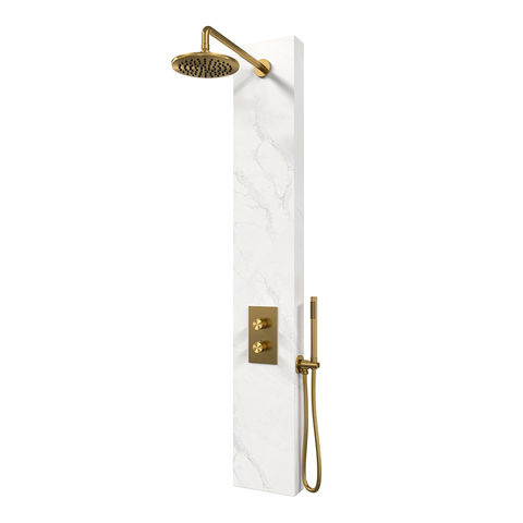 Brauer Gold Edition thermostatisch douchepaneel 2-weg omstelling calacatta gold SET 01 met 20 cm douchekop en gebogen muurarm
