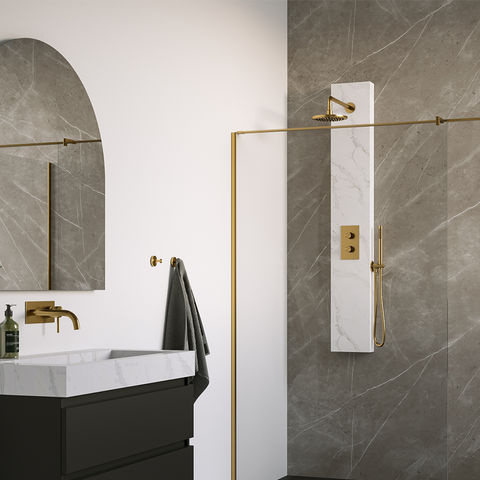 Brauer Edition douchepaneel marmerlook calacatta gold - kranen geborsteld goud PVD