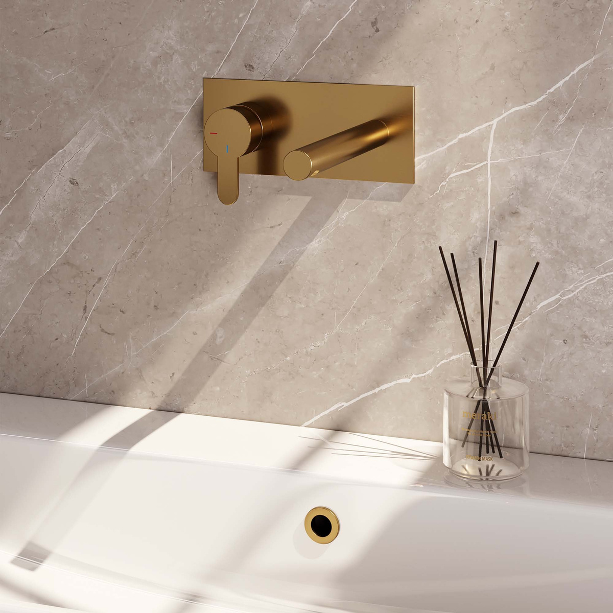 Brauer Gold Edition inbouw wastafelmengkraan | Geborsteld goud PVD | Rechte uitloop | Achterplaat | Smal plat | Links