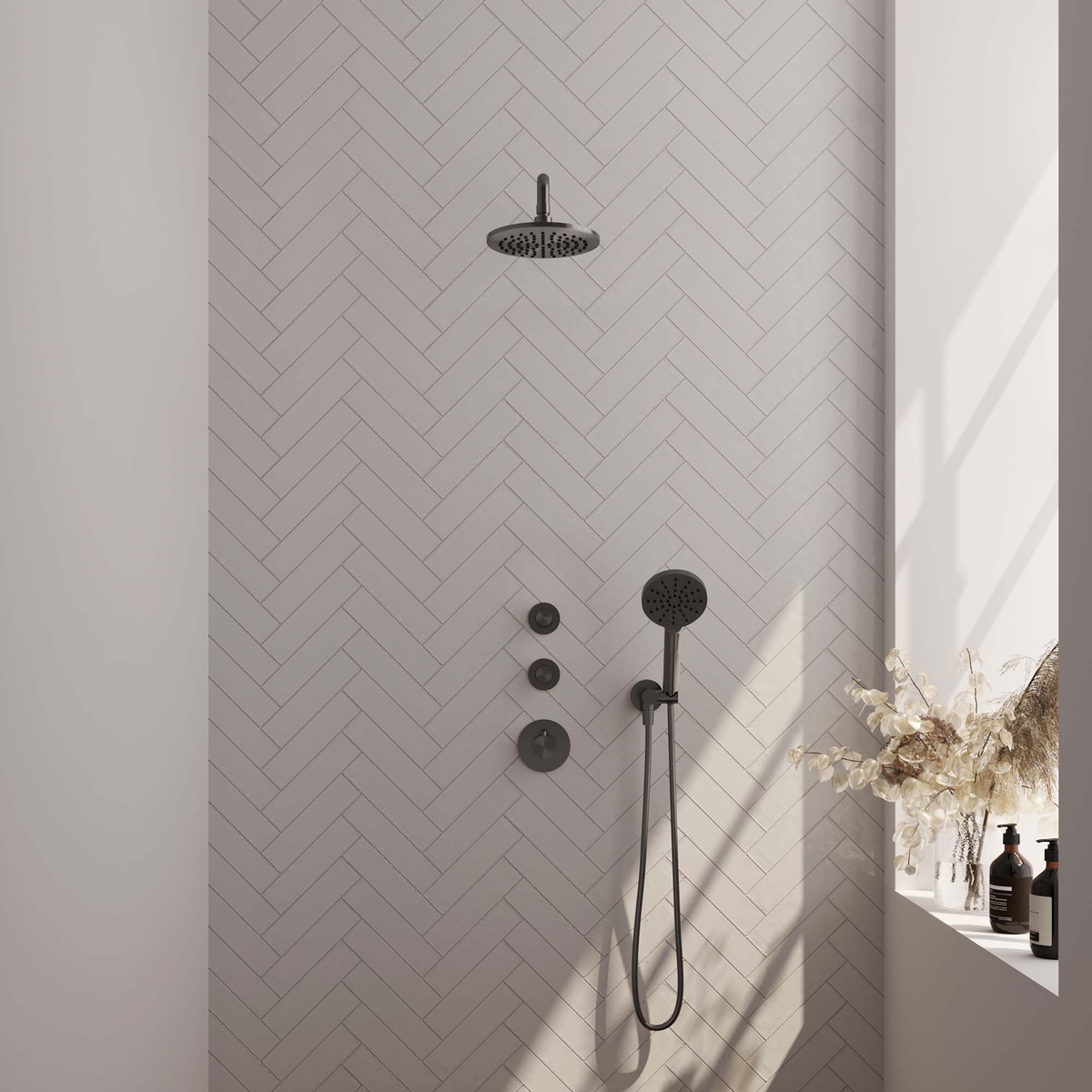 De Brauer Gunmetal Carving Regendoucheset is ontworpen voor gebruiksgemak. Met de carving knoppen pas je moeiteloos de waterstroom aan naar jouw voorkeur. De inbouwdeel zorgt voor een naadloze integratie in de muur, waardoor de regendoucheset een strak en minimalistisch design heeft.