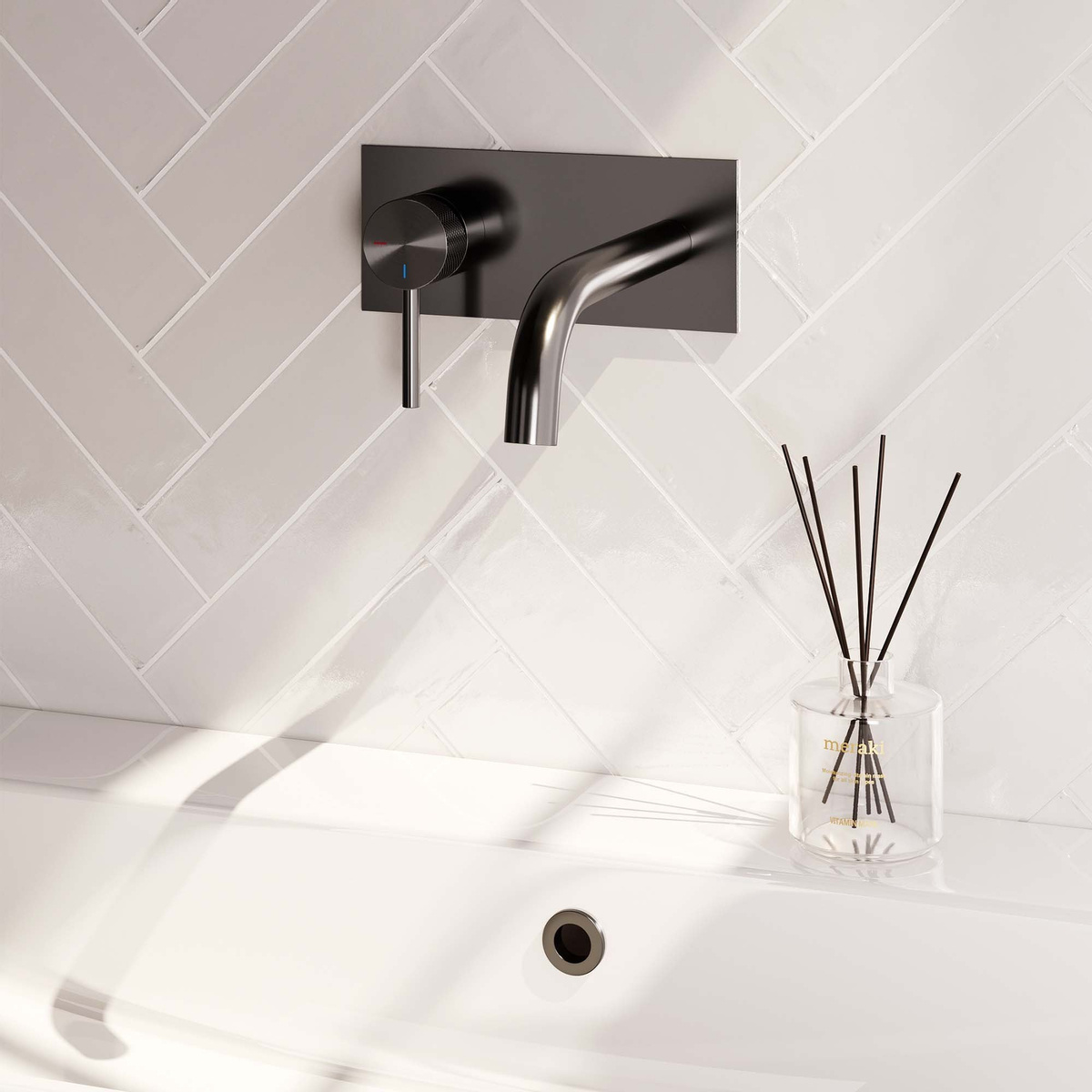 Brauer Gunmetal Carving inbouw wastafelmengkraan | Geborsteld gunmetal PVD | Gebogen uitloop | Achterplaat | Links
