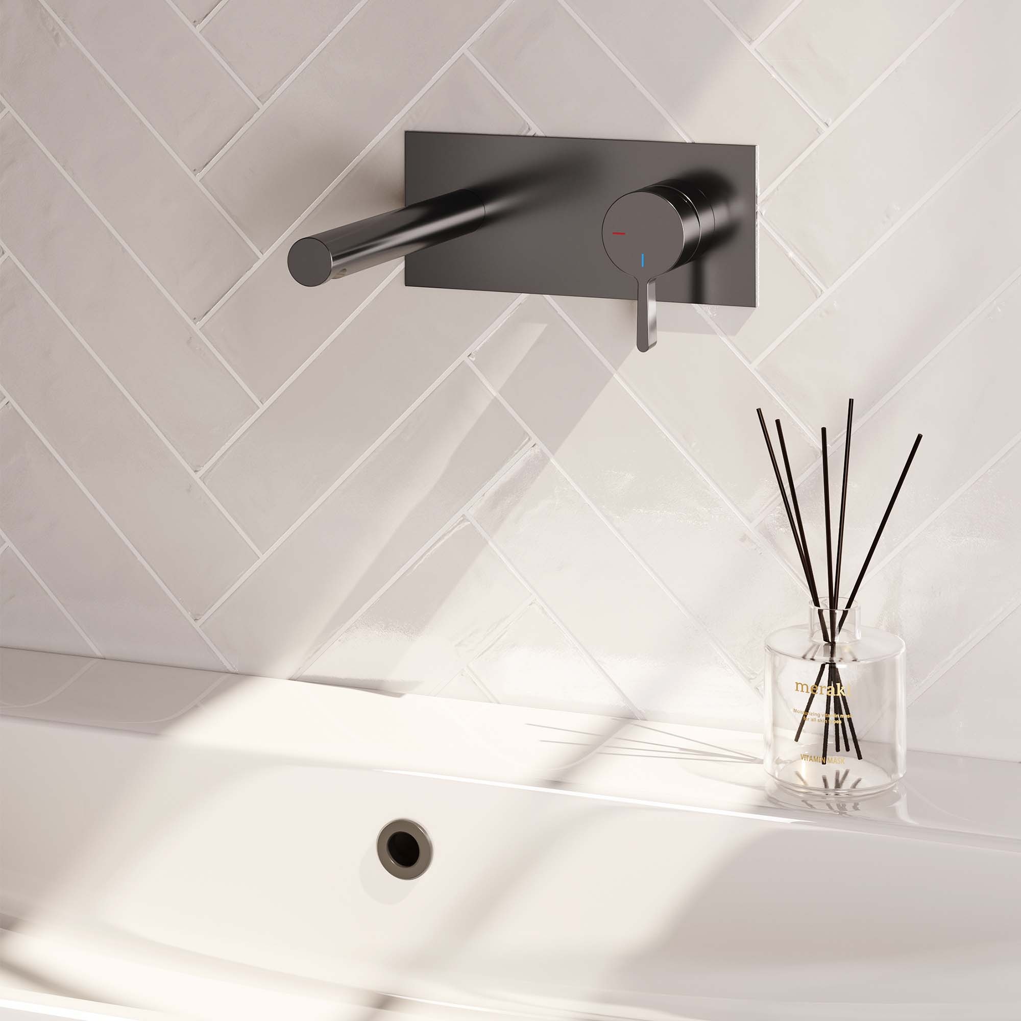 Brauer Gunmetal Edition inbouw wastafelmengkraan | Geborsteld gunmetal PVD | Rechte uitloop | Achterplaat | Middel dik | Rechts