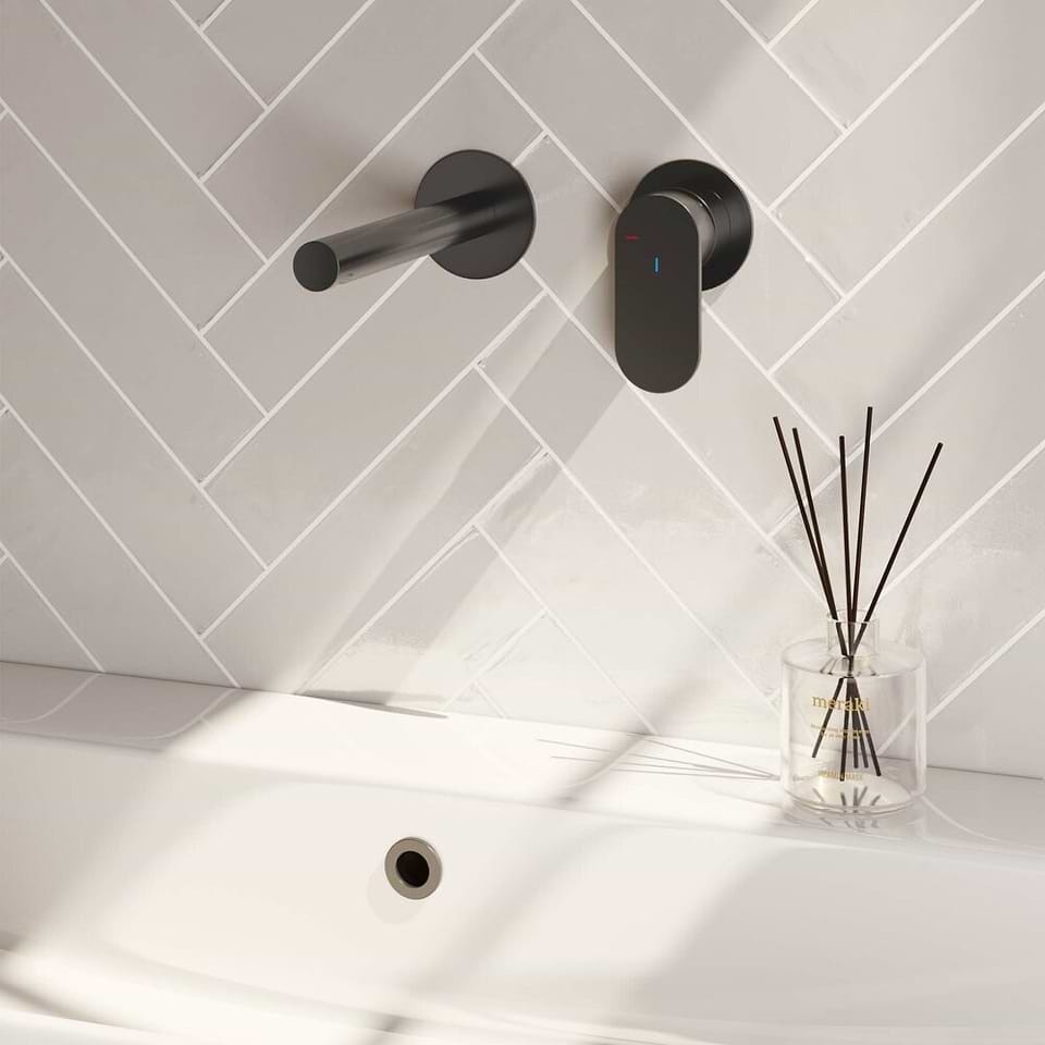 Brauer Gunmetal Edition inbouw wastafelmengkraan | Geborsteld gunmetal PVD | Rechte uitloop | Rozetten | Breed plat | Rechts