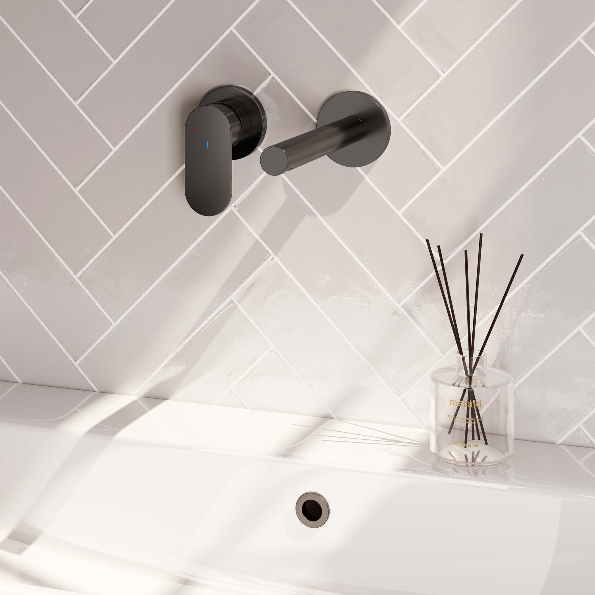 Brauer Gunmetal Edition inbouw wastafelmengkraan | Geborsteld gunmetal PVD | Rechte uitloop | Rozetten | Breed plat | Links
