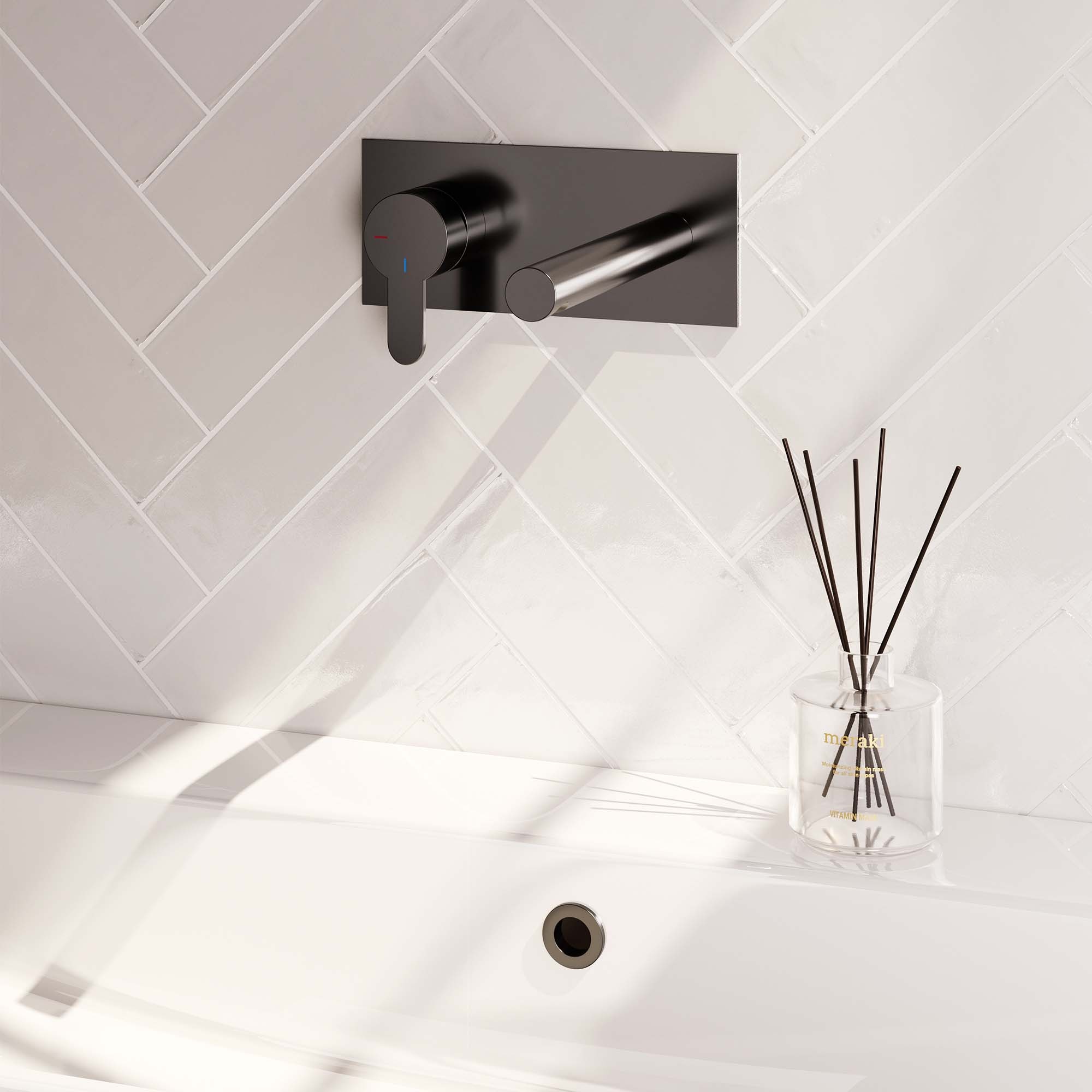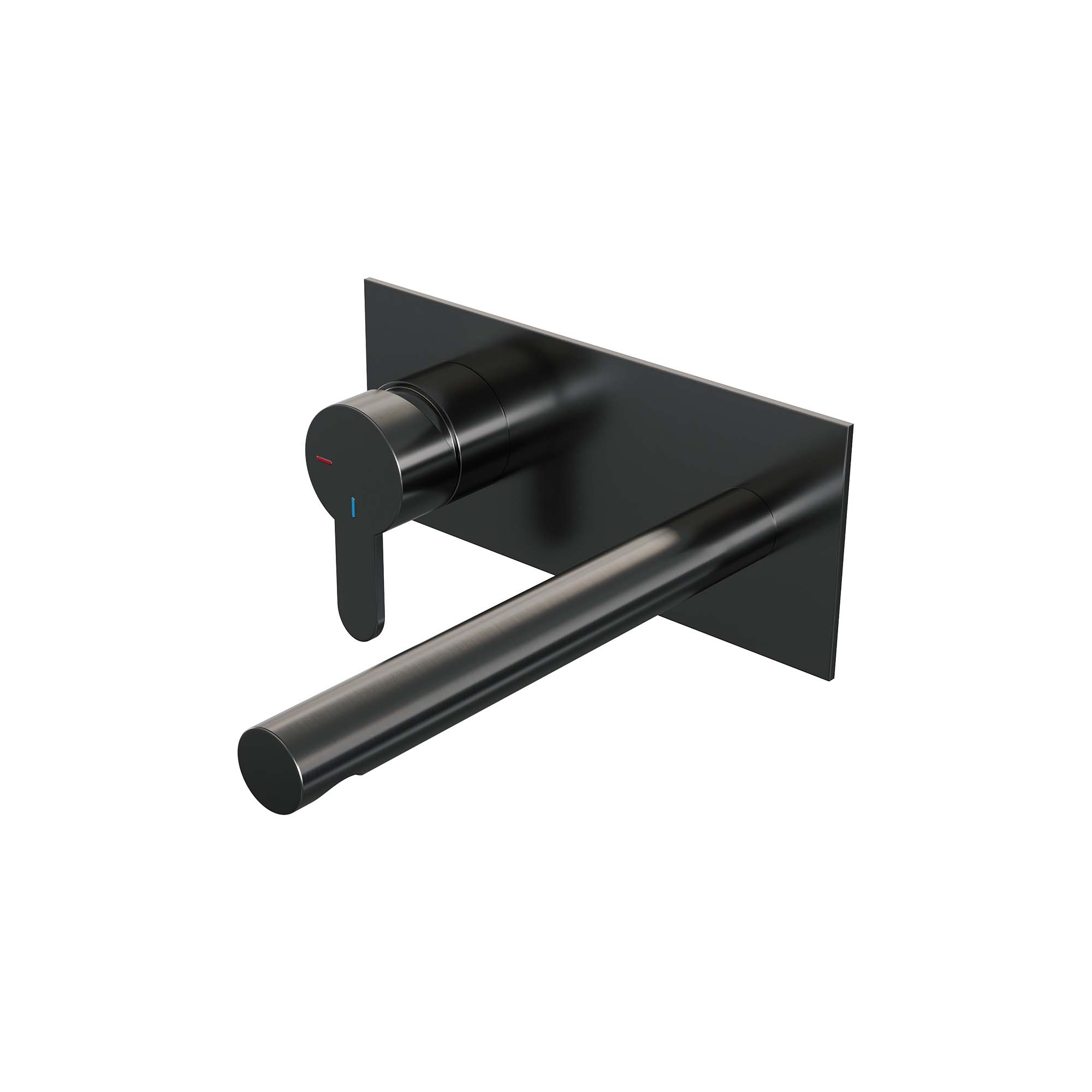 Brauer Gunmetal Edition inbouw wastafelmengkraan | Geborsteld gunmetal PVD | Rechte uitloop | Achterplaat | Smal plat | Links
