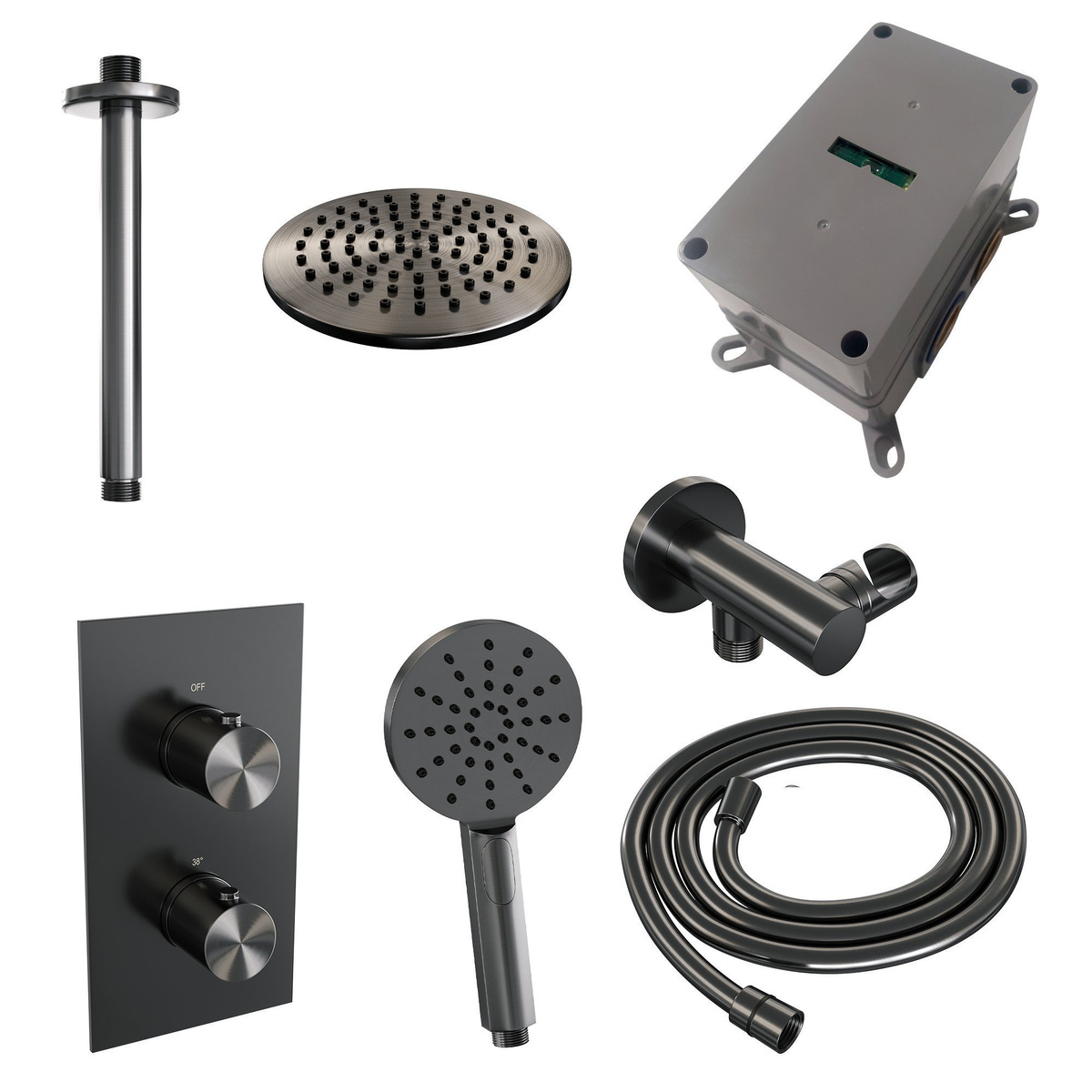 Offerte aanvraag voor Brauer Gunmetal Edition Regendoucheset inbouw | Geborsteld gunmetal PVD | Ronde Handdouche | 20 cm | Plafondbuis | Nee