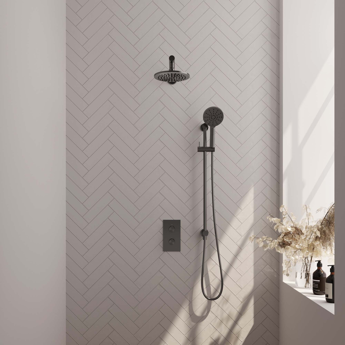 Deze Brauer douche heeft een schitterende gunmetalen kleur, waardoor hij perfect past in een industriële badkamer. Ook geef je met gunmetal vingerafdrukken en kalk geen enkele kans.