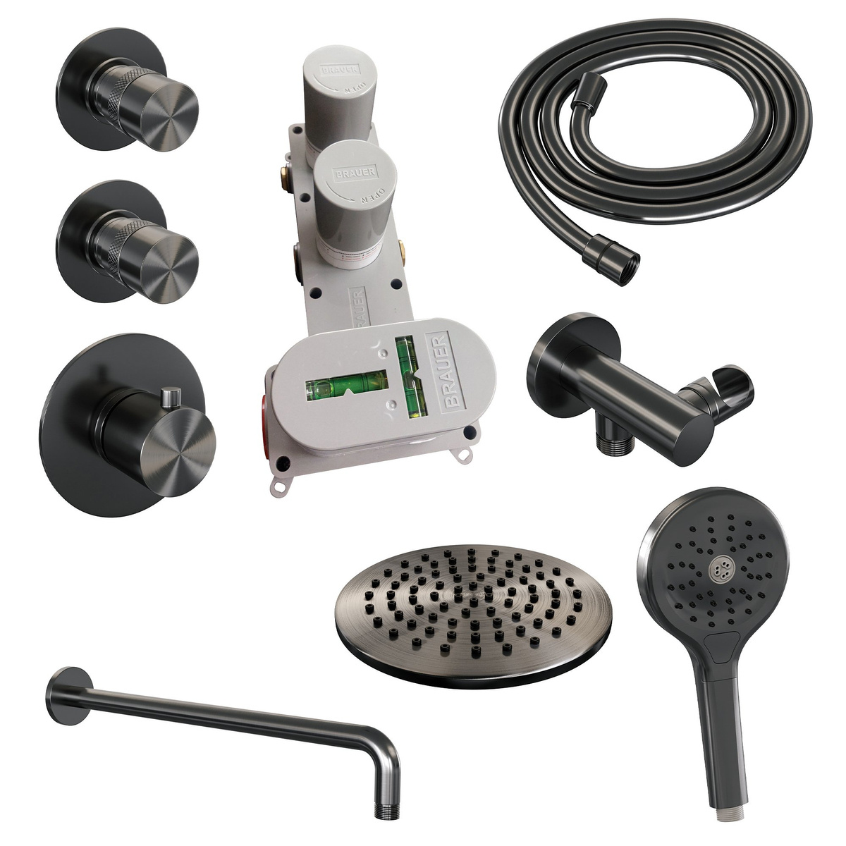 Met de Brauer Gunmetal Edition Regendoucheset inbouw haal je niet alleen een functioneel, maar ook een stijlvol product in huis. Maak vandaag nog je badkamer compleet en vertrouw op de jarenlange ervaring van Brauer.