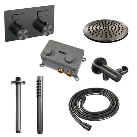 Brauer Gunmetal Edition thermostatische inbouw regendouche met drukknoppen SET 53 | Geborsteld gunmetal PVD | 20 cm | Nee | Plafondbuis | Staafhanddouche