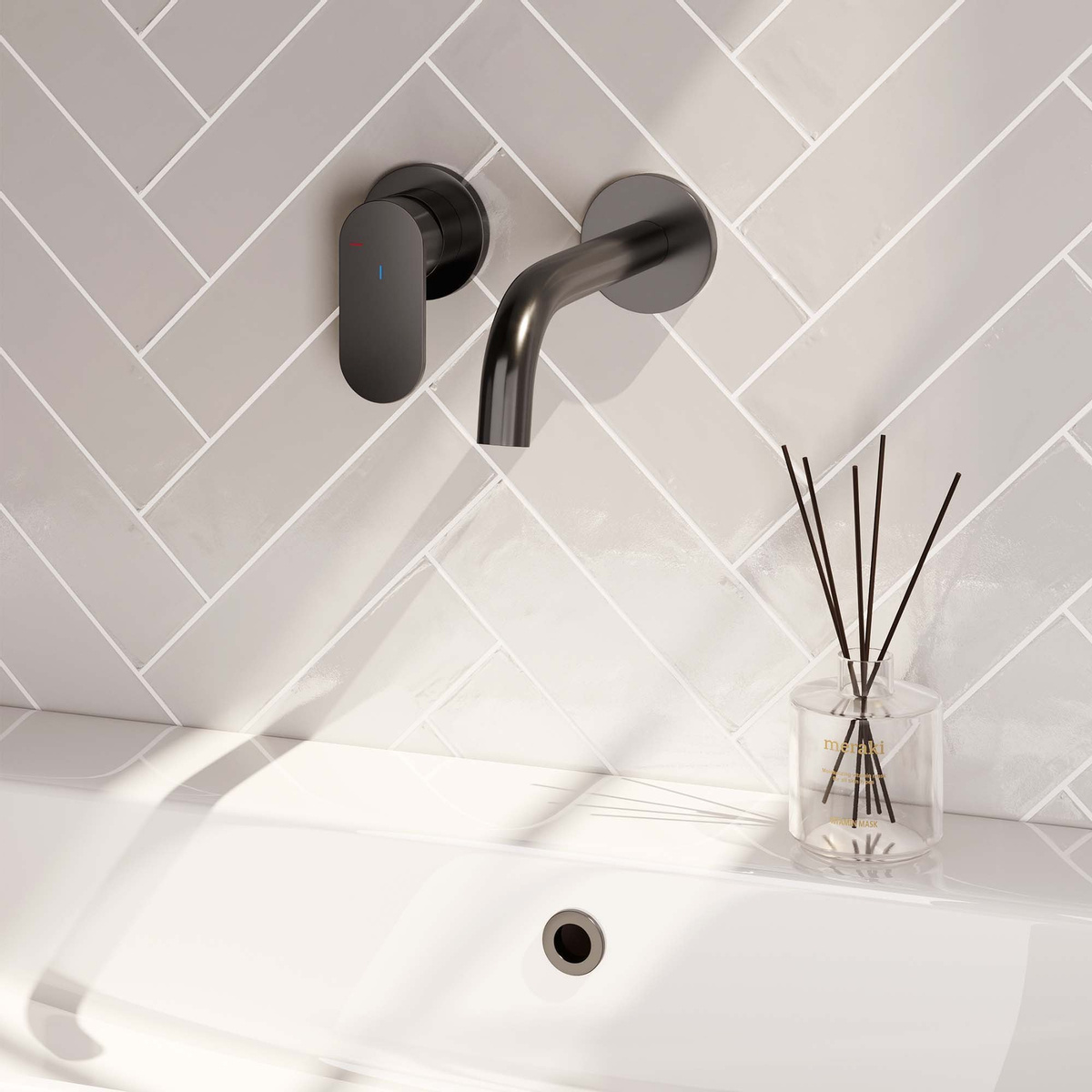 Brauer Gunmetal Edition inbouw wastafelmengkraan | Geborsteld gunmetal PVD | Gebogen uitloop | Rozetten | Breed plat | Links