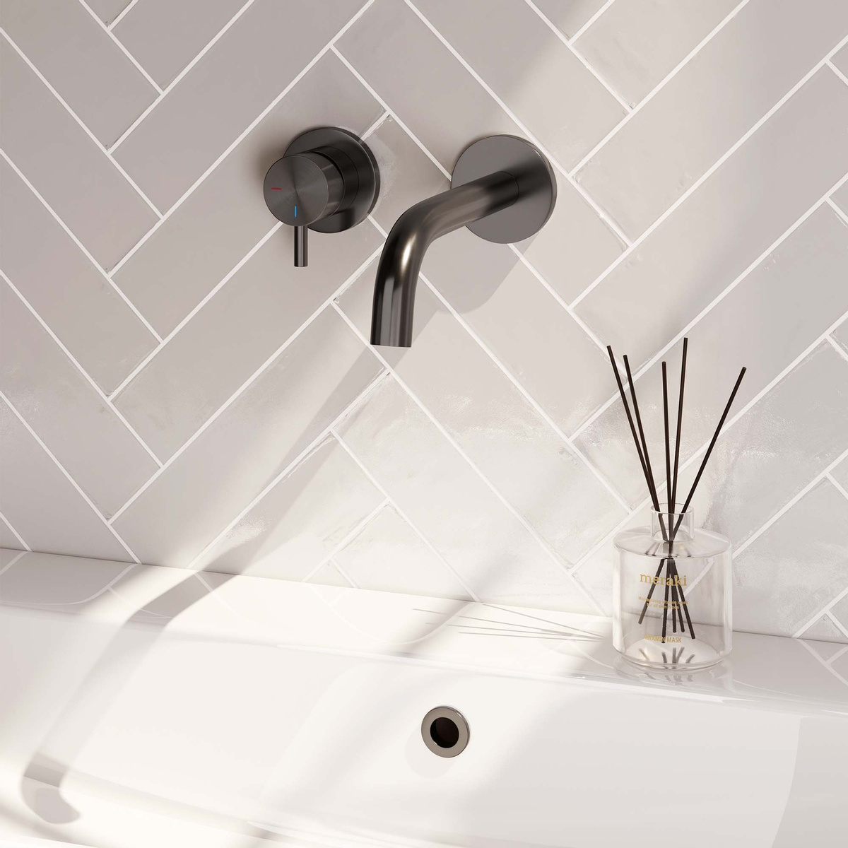 Brauer Gunmetal Edition inbouw wastafelmengkraan | Geborsteld gunmetal PVD | Gebogen uitloop | Rozetten | Kort smal | Links