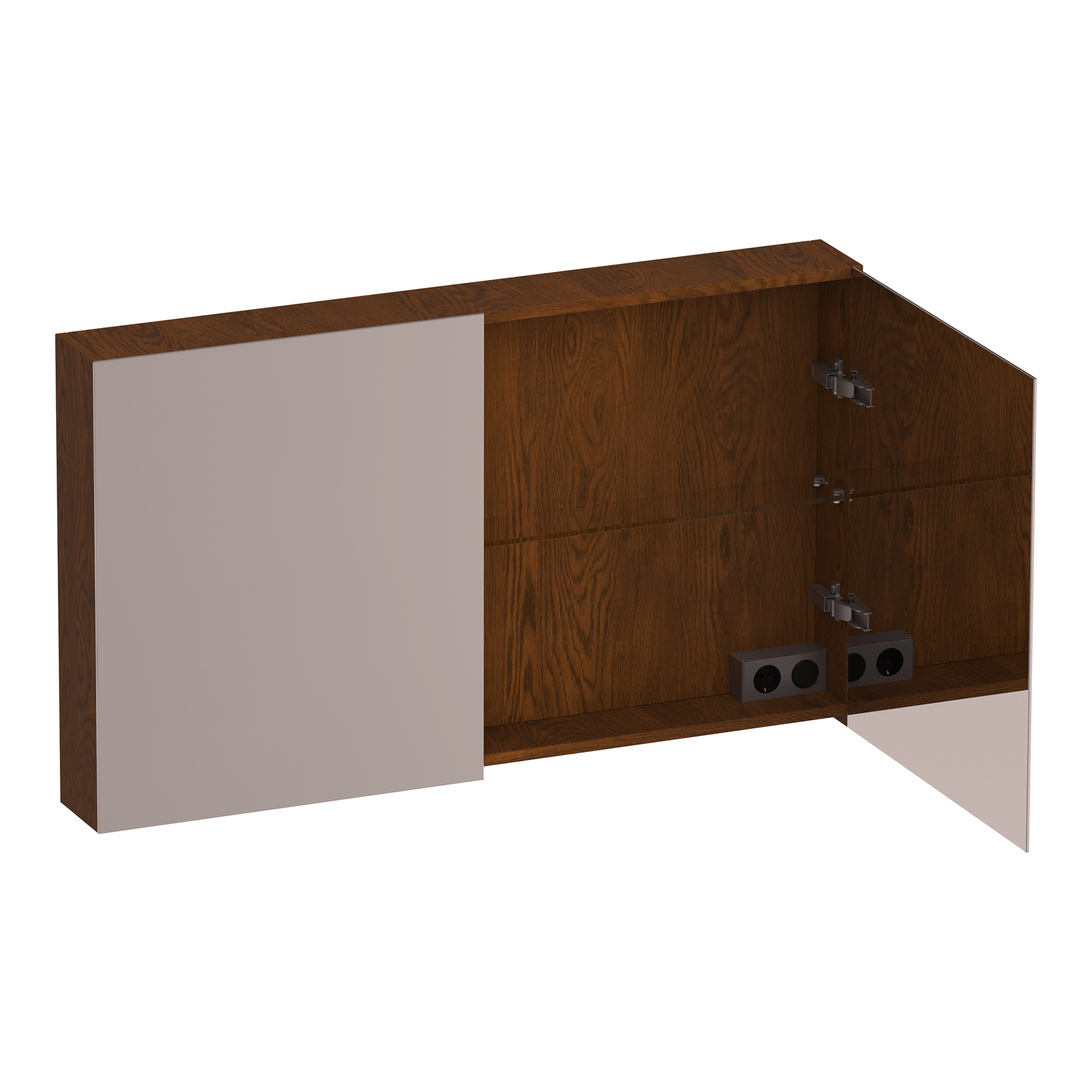 De spiegelkast is ontworpen zonder geïntegreerde verlichting, wat je de vrijheid geeft om opbouwverlichting naar eigen smaak toe te voegen. Hoogwaardige softclose scharnieren zorgen voor een geruisloze sluiting, terwijl de dubbele deuren een handige opbergruimte bieden voor al je badkamerspulletjes.
