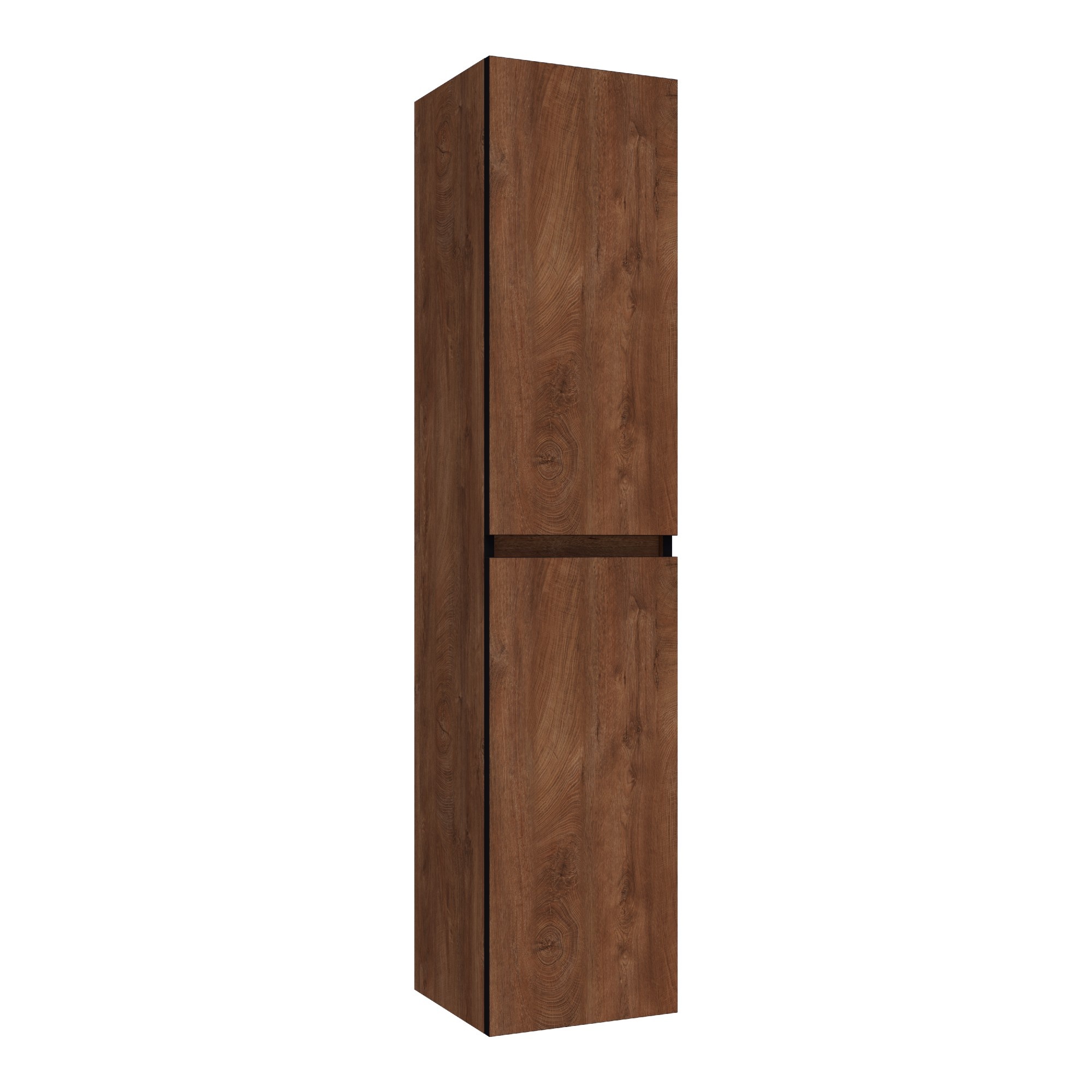 Met zijn hoge, slanke vorm en warme houttinten creëert deze kast een harmonieus geheel in je badkamer. De glazen legplanken bieden een luchtige uitstraling, terwijl de geruisloze deuren zorgen voor een comfortabele gebruikservaring. De kast is flexibel te monteren en komt direct geassembleerd, klaar voor gebruik.