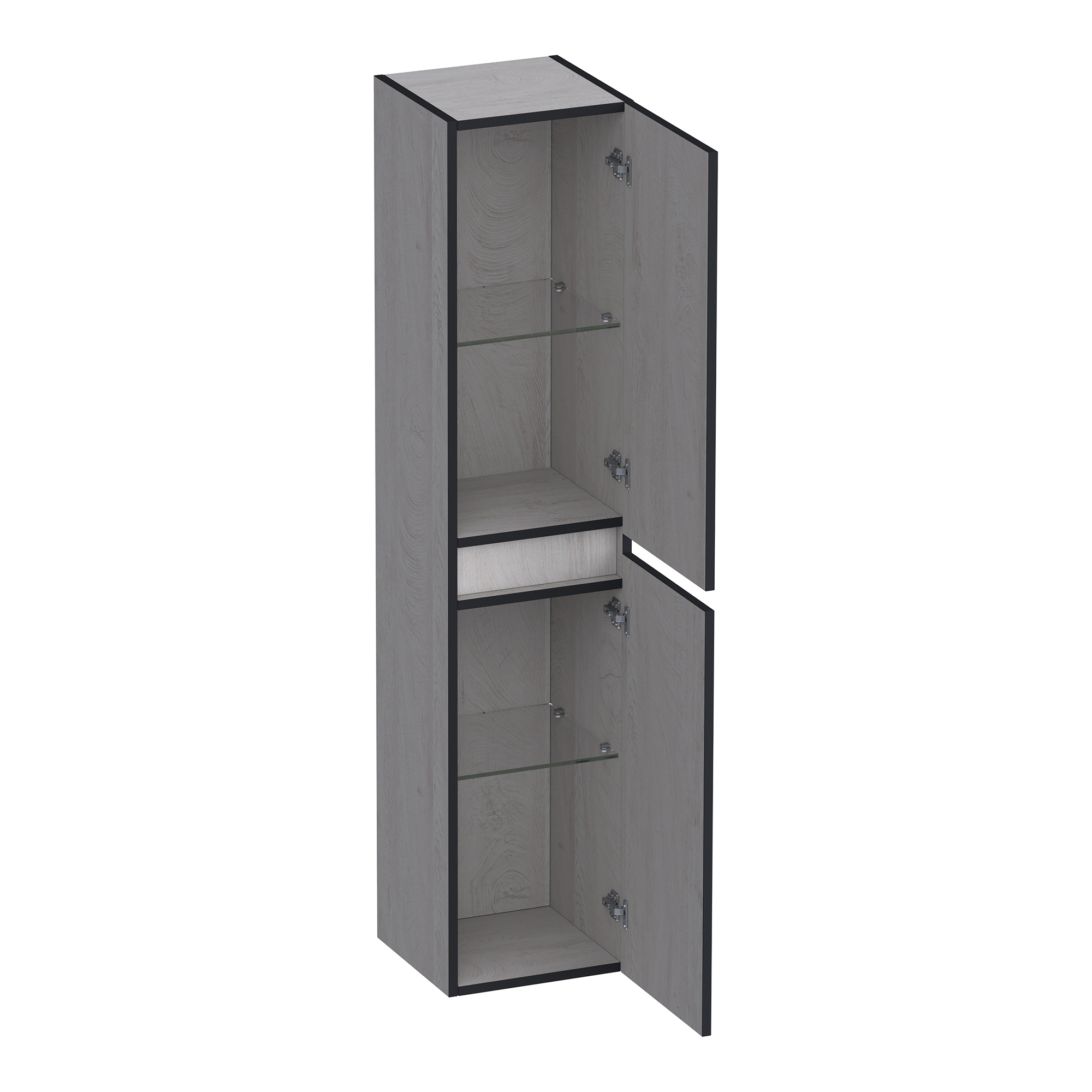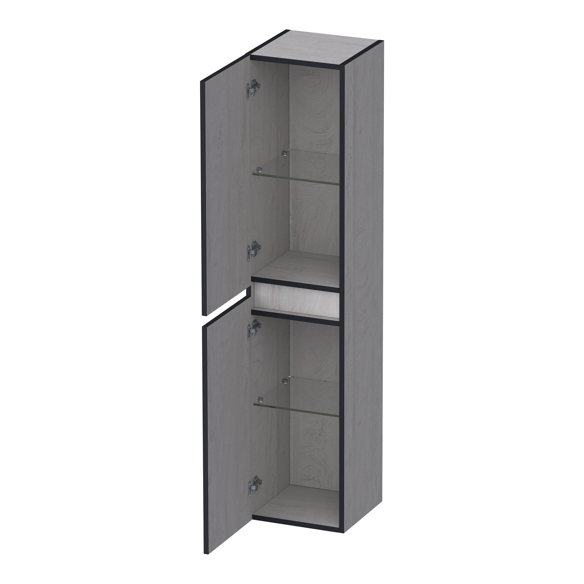 De kast straalt een natuurlijke, lichte ambiance uit, perfect voor een serene badkameromgeving. Met zijn royale afmetingen biedt het voldoende opbergruimte, terwijl de glazen legplanken een vleugje elegantie toevoegen. De geruisloze softclosing deuren zorgen voor extra comfort en een vlekkeloze ervaring.