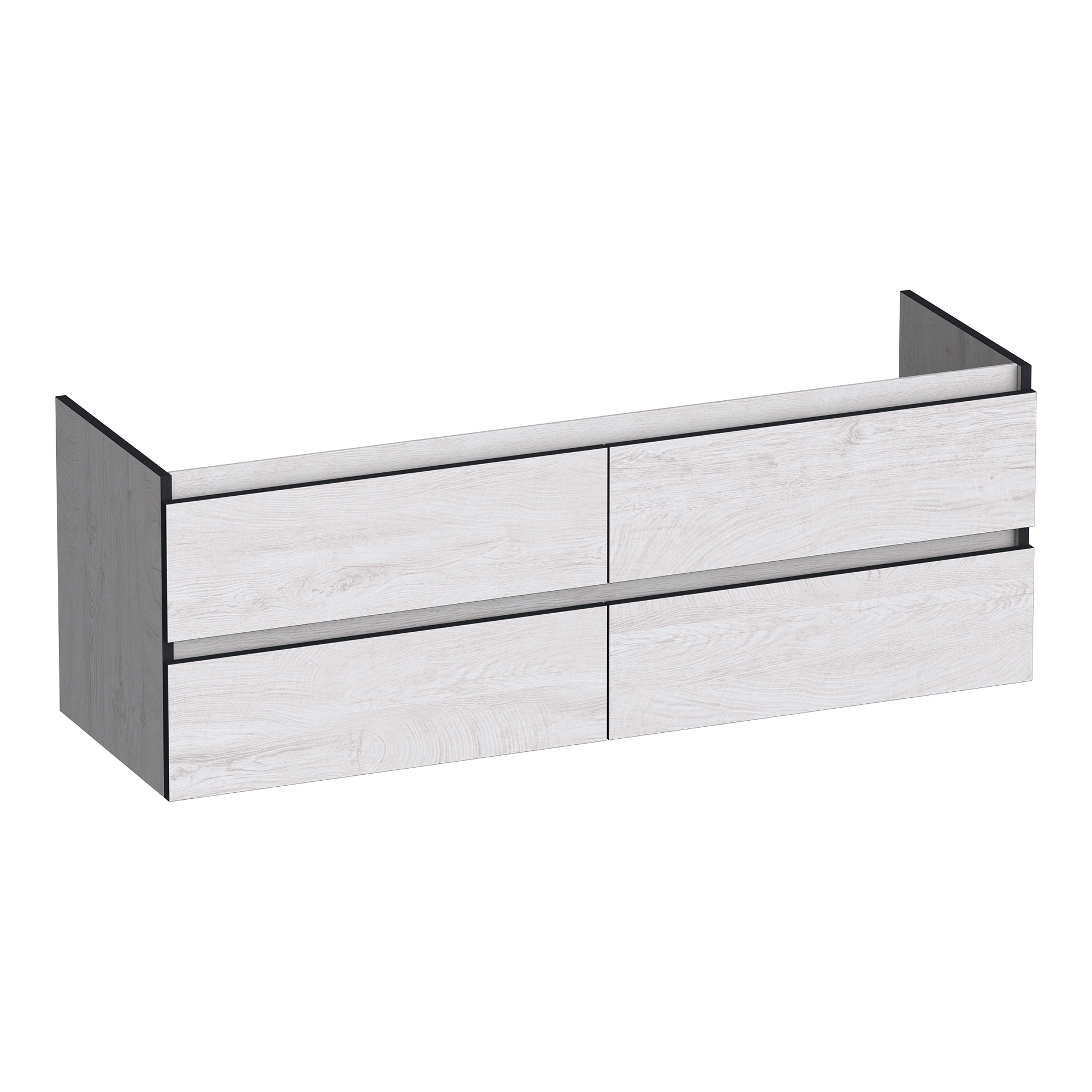 Met zijn strakke lijnen en symmetrische vormgeving creëert de onderkast een ingetogen elegantie. De zwarte omlijsting voegt een krachtig accent toe, terwijl de soft-close lades voor een vleugje luxe zorgen. Perfect voor wie houdt van een opgeruimde, moderne badkamer.