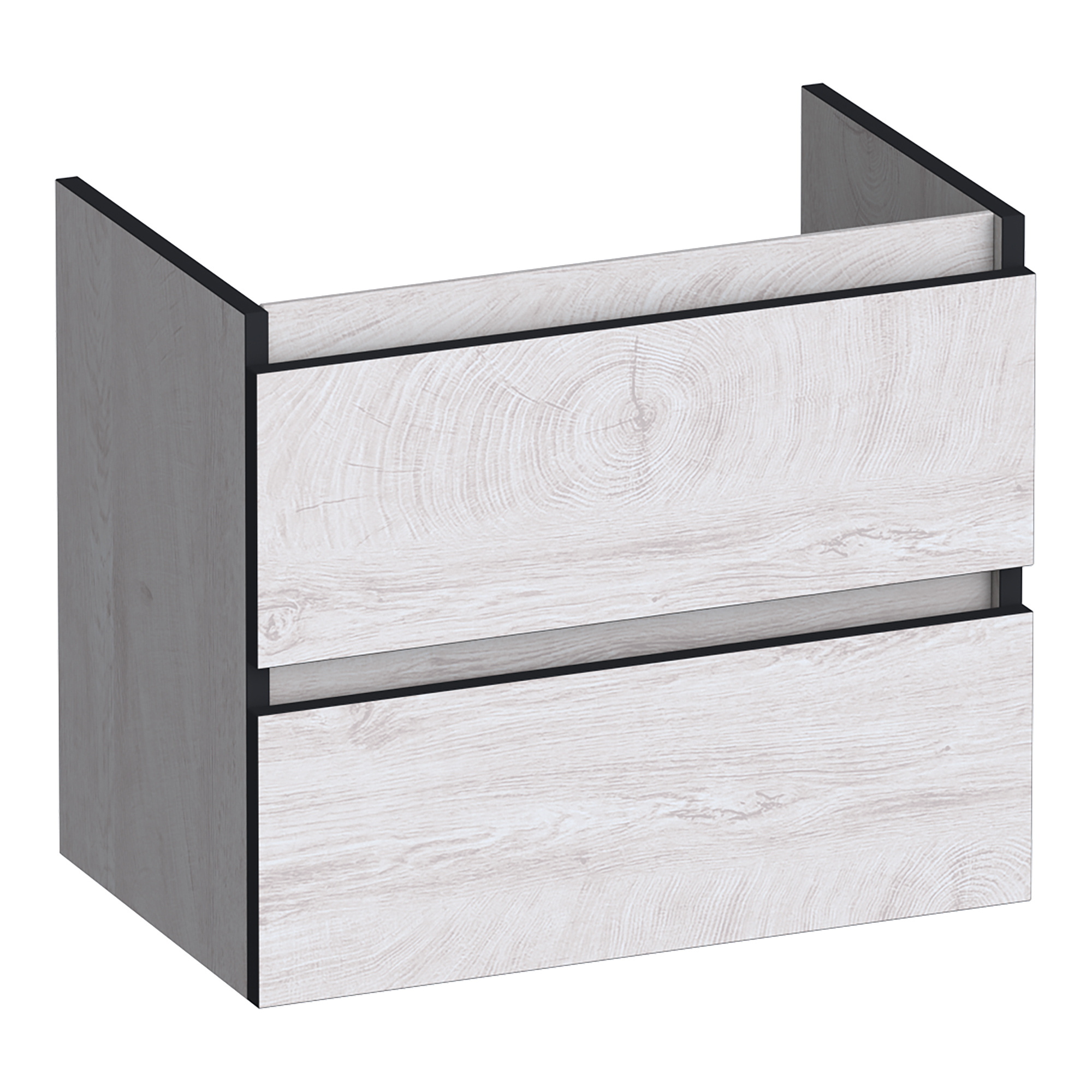 Deze onderkast straalt robuustheid uit door de zwarte randen en biedt dankzij de slimme soft-close lades gemak en comfort. De wandmontage zorgt voor een nette, zwevende uitstraling die iedere badkamer net dat beetje extra geeft.
