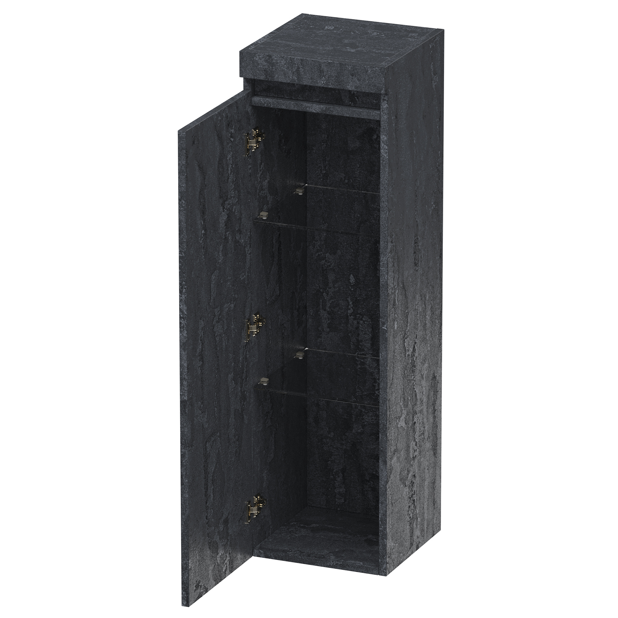 Met zijn enkele deur die zachtjes sluit, biedt deze kast een ongeëvenaarde rust in de badkamer. Binnenin vind je drie vakken, perfect georganiseerd om al je benodigdheden op te bergen. De kast is niet alleen praktisch, maar ook een stijlvolle toevoeging door de tijdloze uitstraling van damascus.