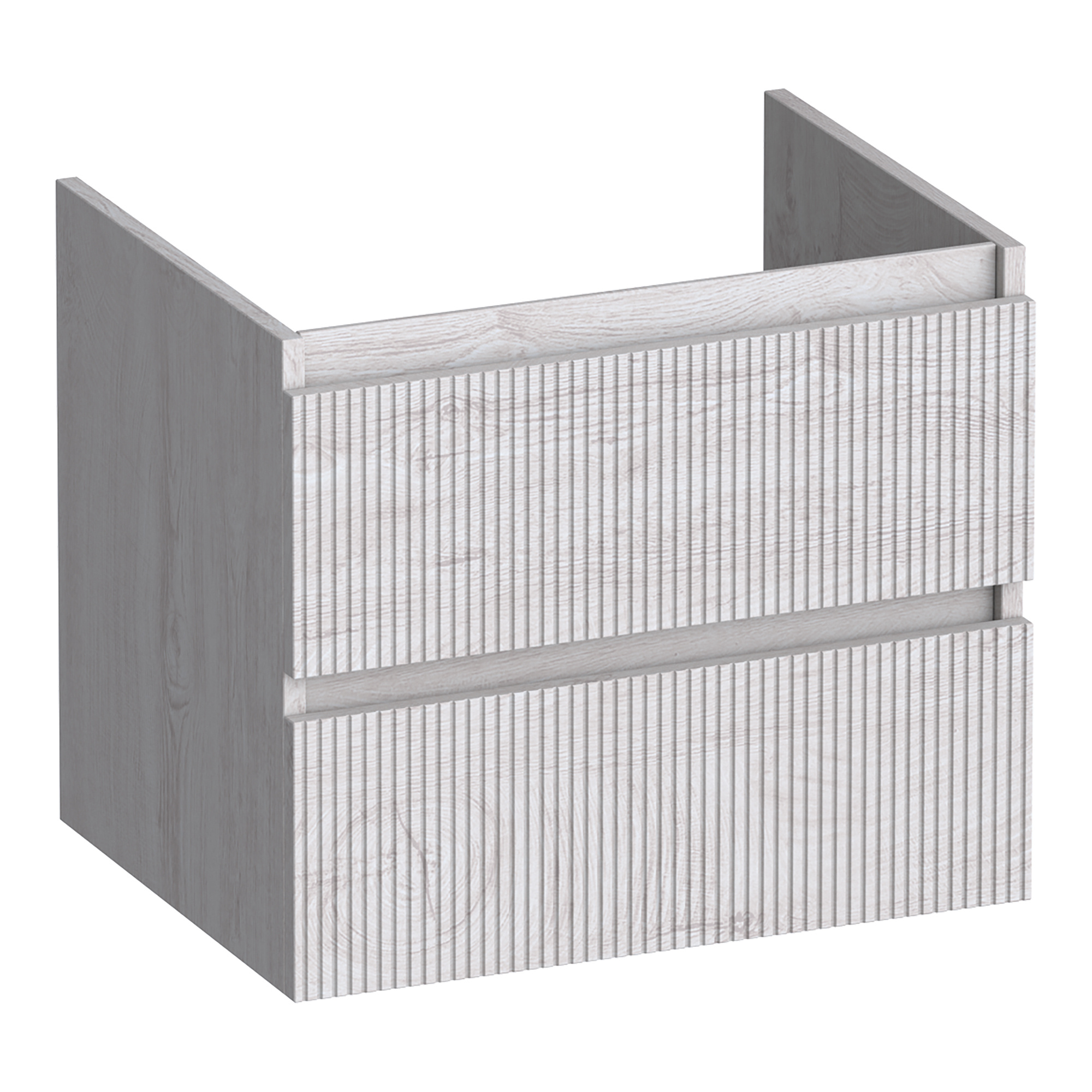 Met zijn strakke greeploze fronten en een verfijnde ribbelstructuur, voegt deze onderkast een dynamisch effect toe aan je badkamer. De lades sluiten zachtjes dankzij het slimme soft-close mechanisme. De kast is met zorg ontworpen om een vleugje ingetogen elegantie te bieden zonder opdringerig te zijn.