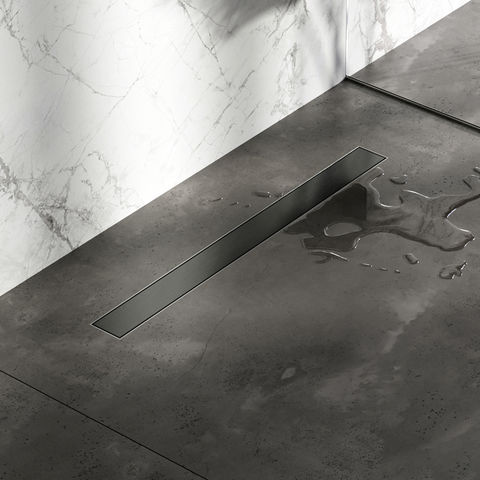 Het rooster is gemaakt van roestvrij staal (RVS) en heeft een vlak (zero) ontwerp. De afwerking is gunmetal geborsteld, wat zorgt voor een subtiele, matte uitstraling. Dankzij de PVD-coating is het rooster extra bestand tegen krassen en vlekken. Je kunt het rooster combineren met verschillende lengtes douchegoten, want het is verkrijgbaar in meerdere maten, van 50 cm tot wel 200 cm. Dit geeft je de vrijheid om het goed af te stemmen op de afmetingen van jouw douche. Het belangrijkste kenmerk is dat je tegels in het rooster kunt plaatsen, zodat de afvoer vrijwel onzichtbaar wordt in de vloer.