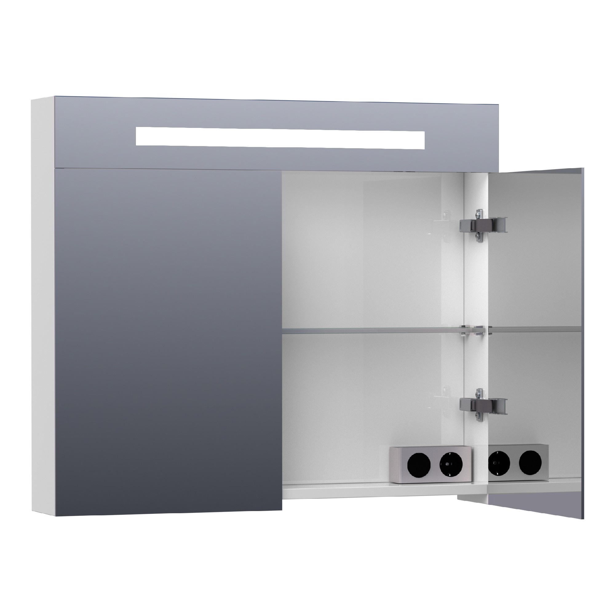 Brauer Promise Deluxe spiegelkast 80x70cm MDF 2 deuren met directe LED verlichting boven - hoogglans wit elegant en functioneel