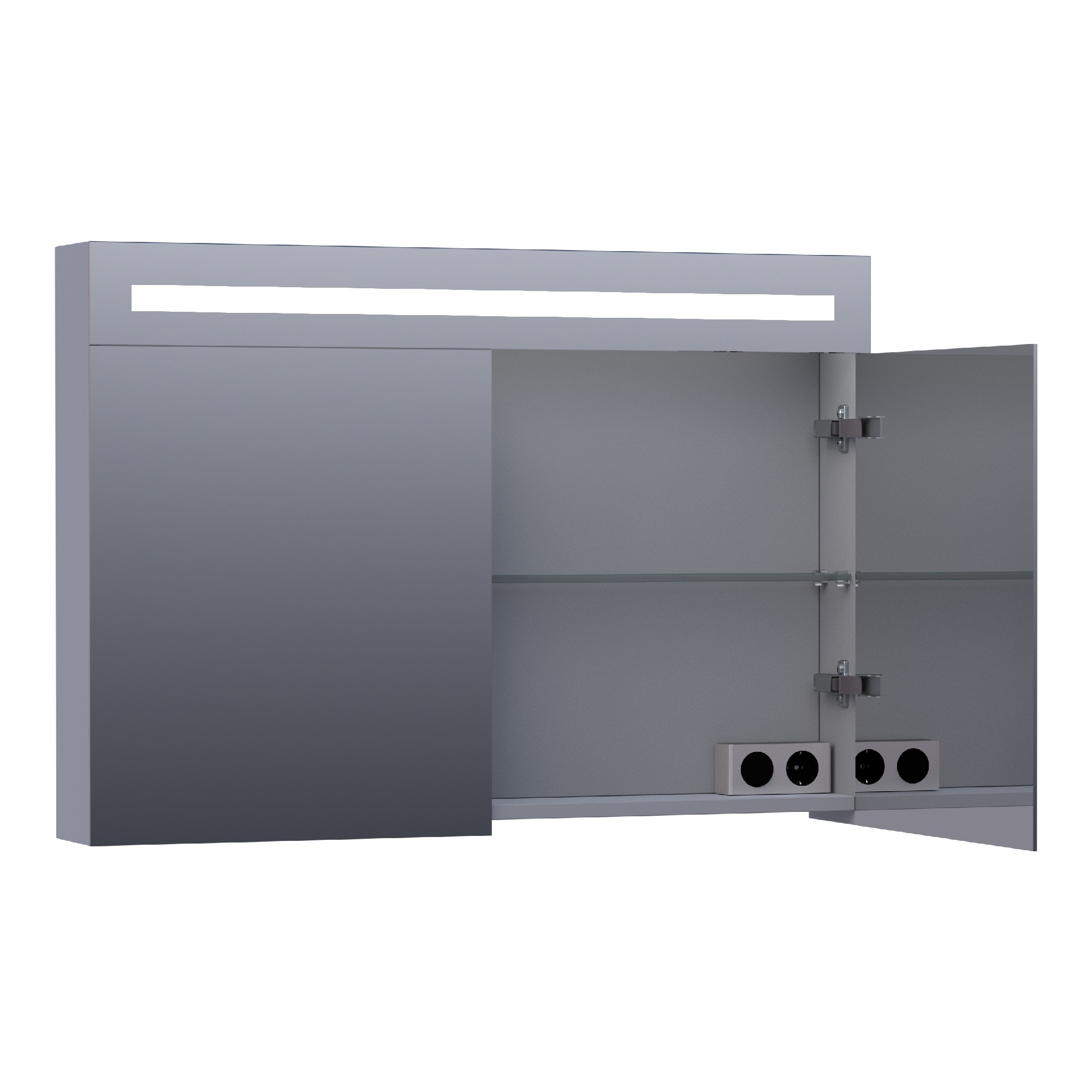 Brauer Promise Deluxe spiegelkast 99x70cm MDF 2 deuren met directe LED verlichting boven - mat grijs