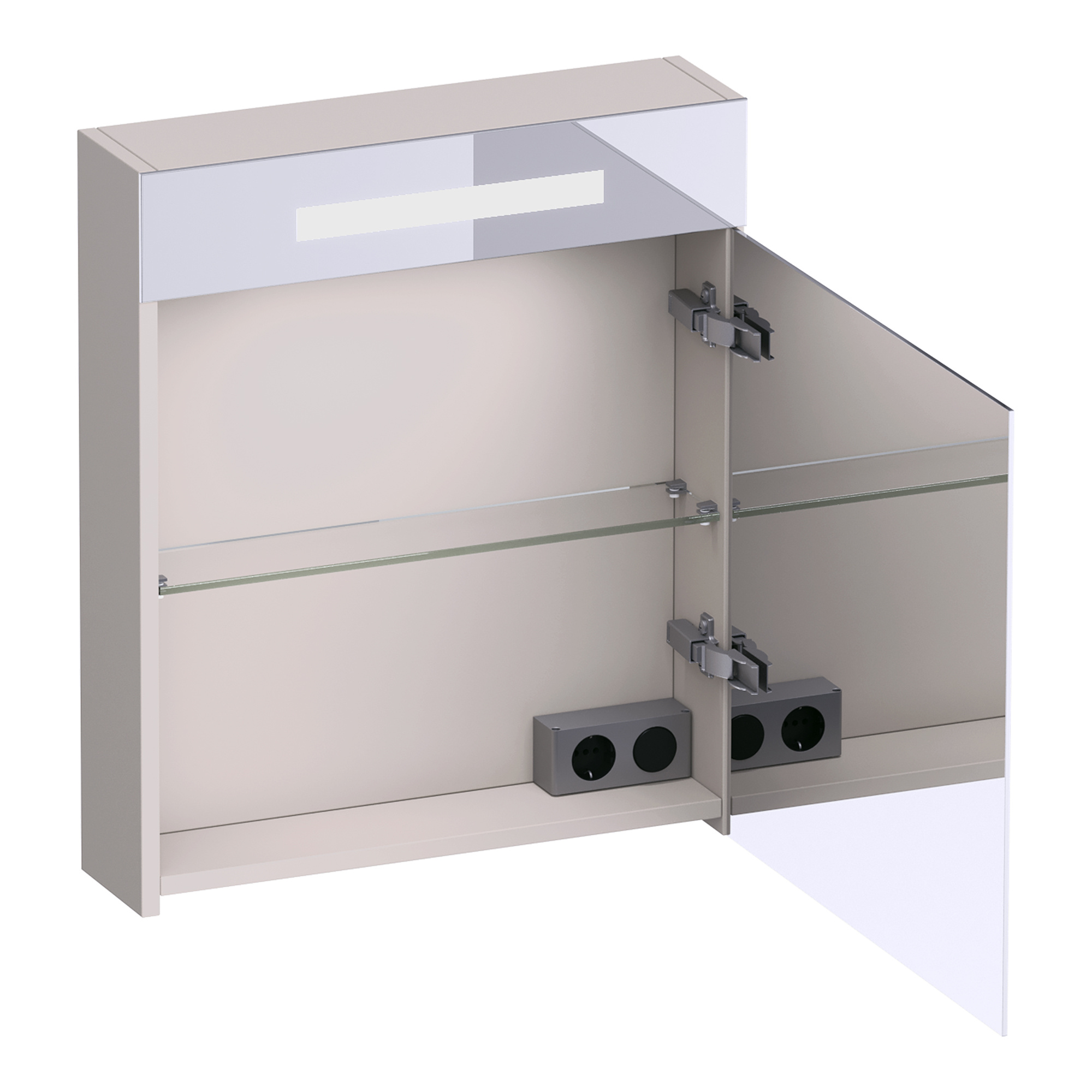 Deze spiegelkast biedt een slimme opbergoplossing met zijn dubbelzijdige spiegeldeur en glazen legplank. De geïntegreerde stopcontact en schakelaar maken het gebruik van apparaten zoals een föhn of scheerapparaat moeiteloos. De directe LED-verlichting aan de bovenzijde zorgt voor een helder begin van je dag.