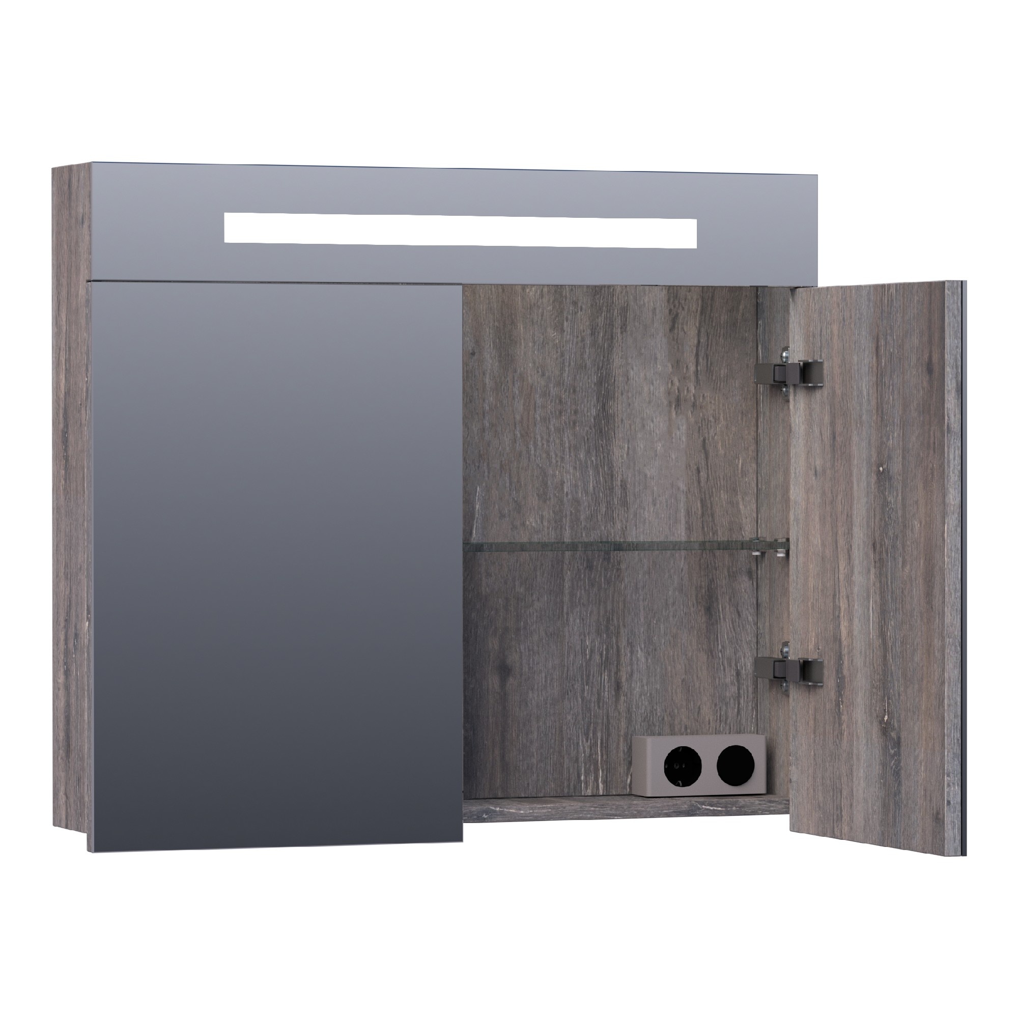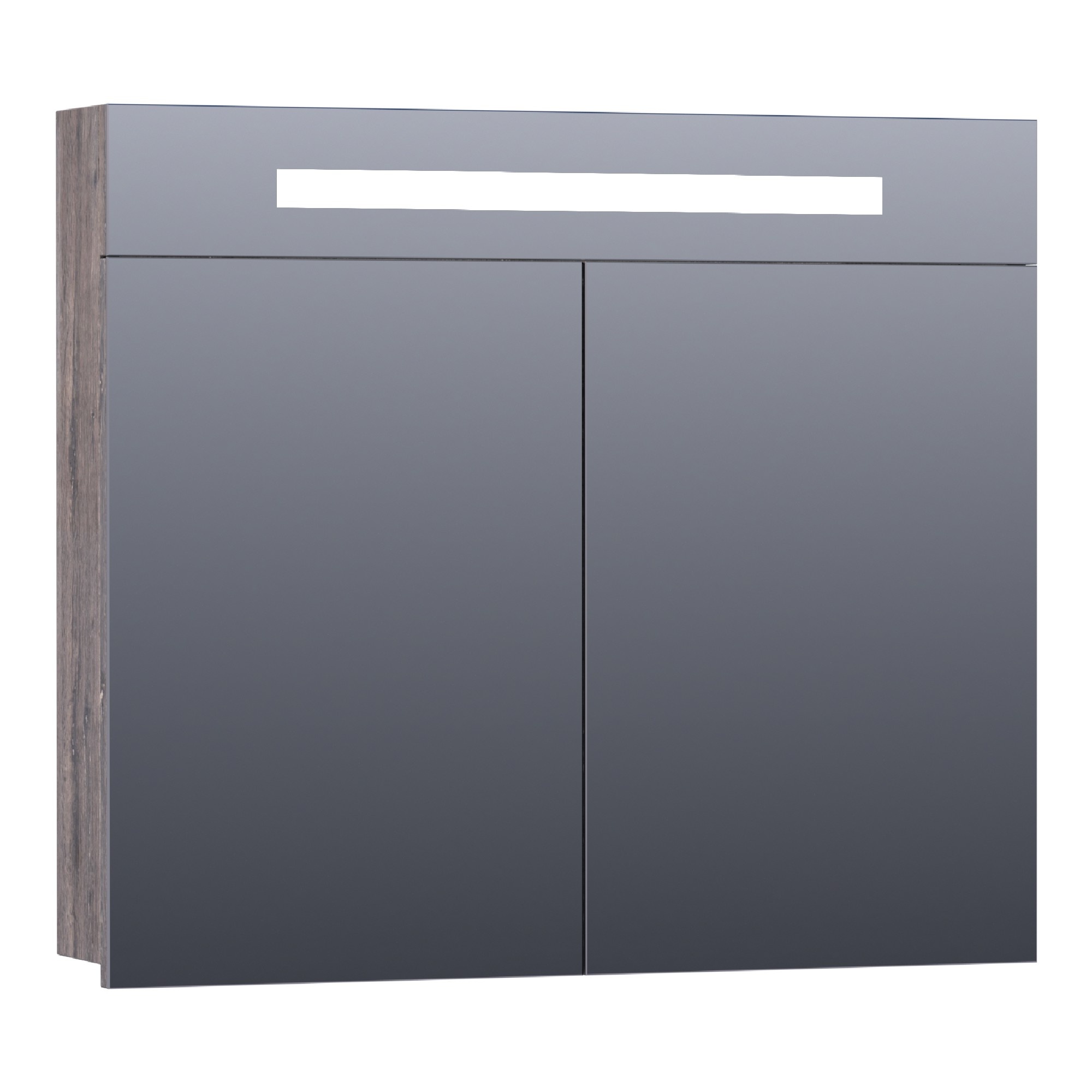 Brauer Promise spiegelkast 80x70cm MFC 2 deuren met directe LED verlichting boven - driftwood
