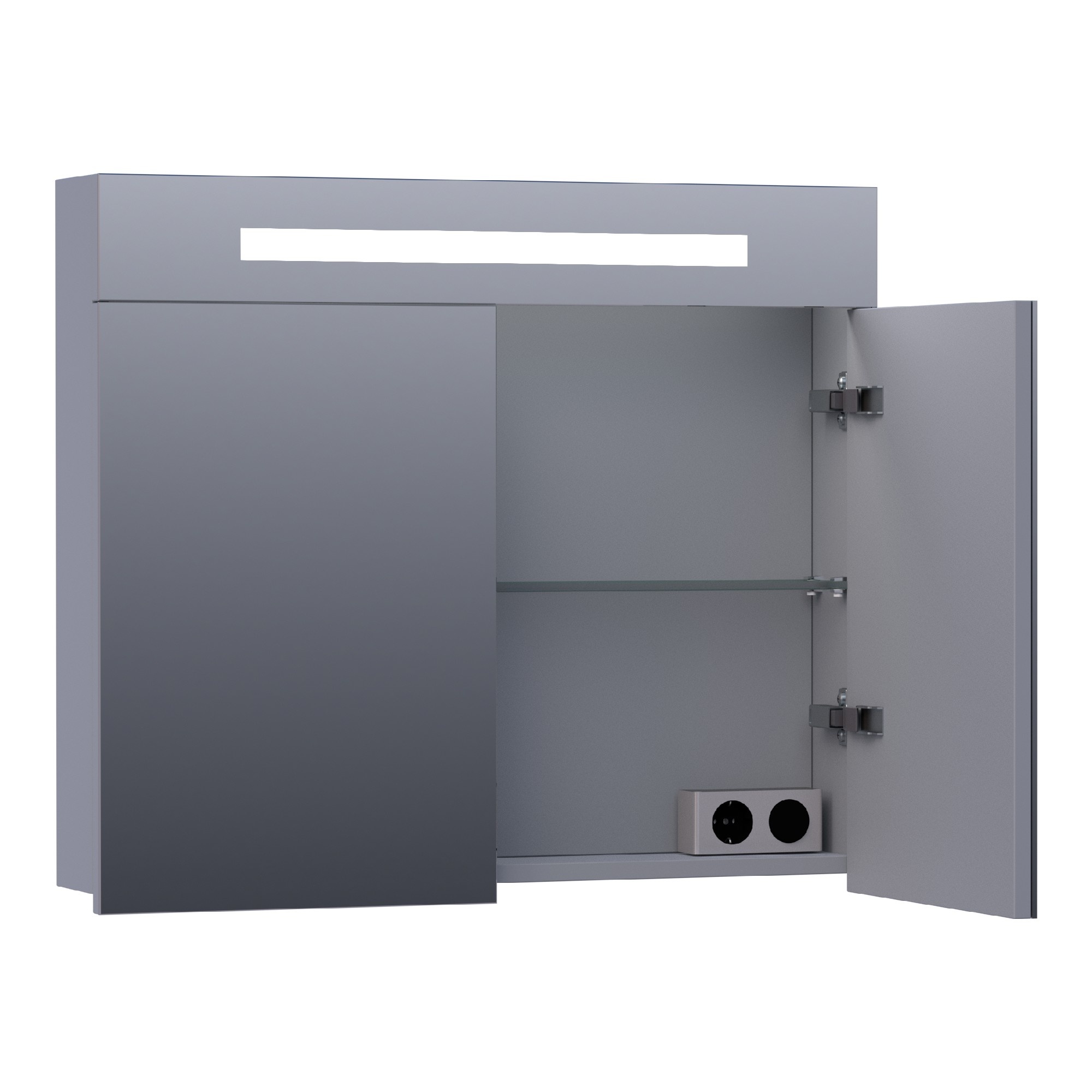 Brauer Promise spiegelkast 80x70cm MDF 2 deuren met directe LED verlichting boven - mat grijs