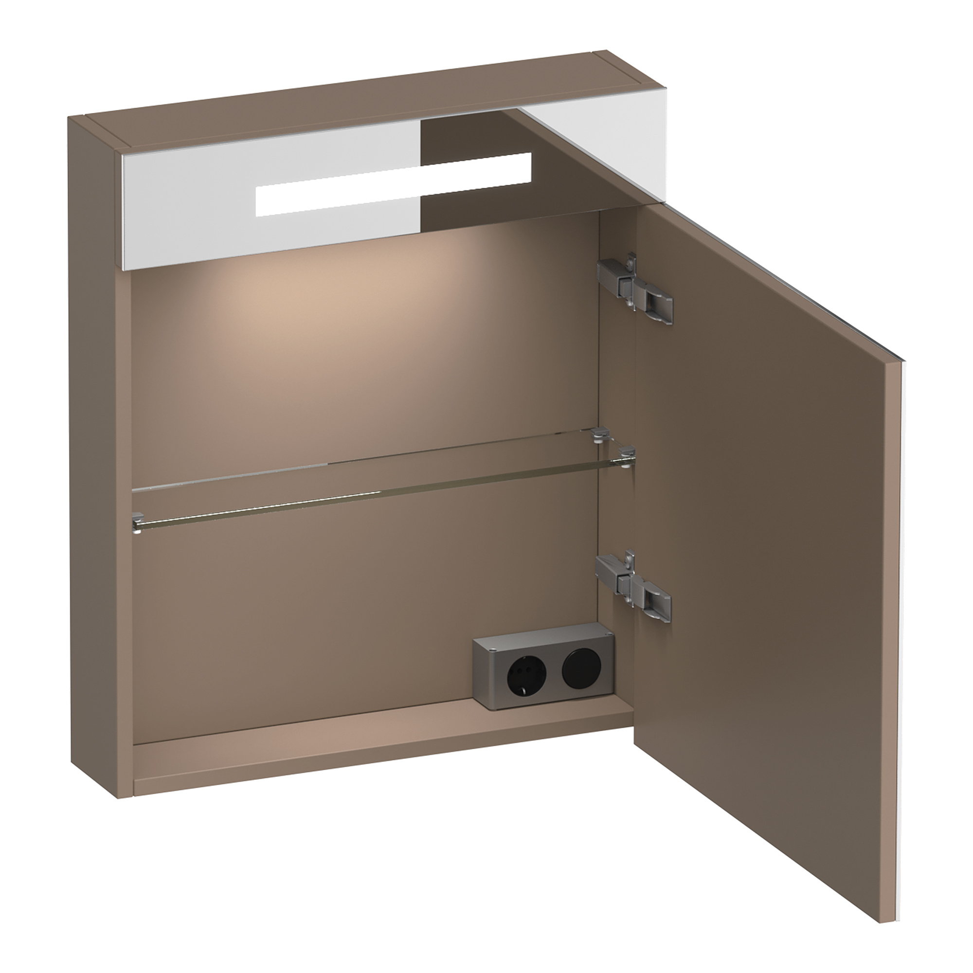 Brauer Promise spiegelkast 59x70cm MDF 1 deur met directe LED verlichting boven - rechtsdraaiend - mat mokka elegant en functioneel